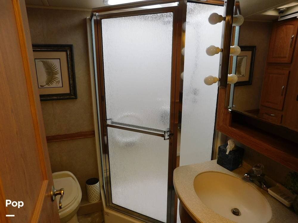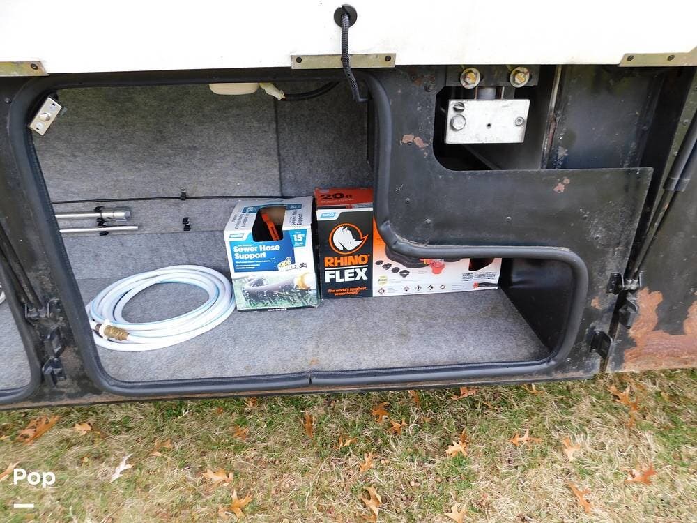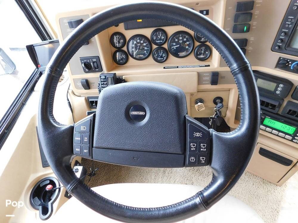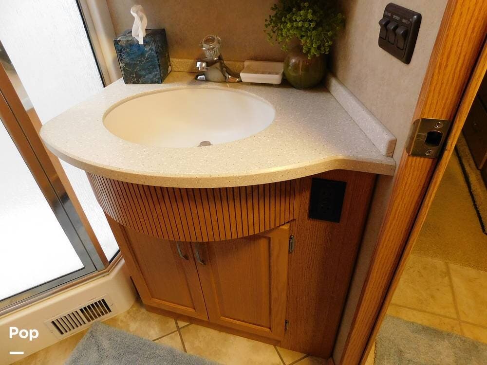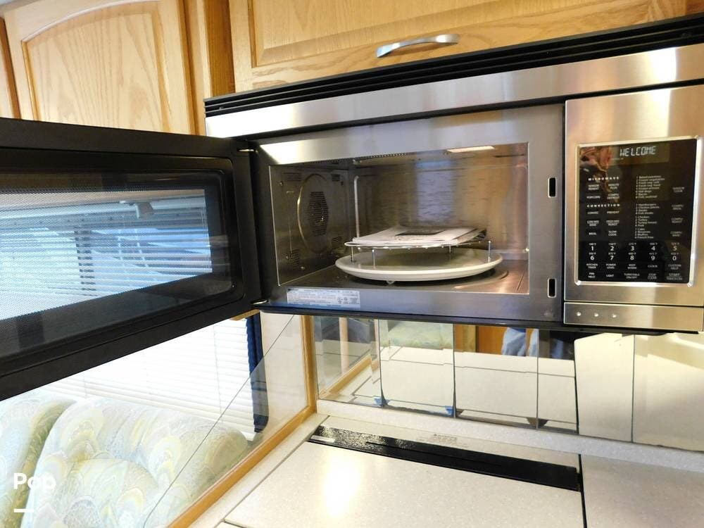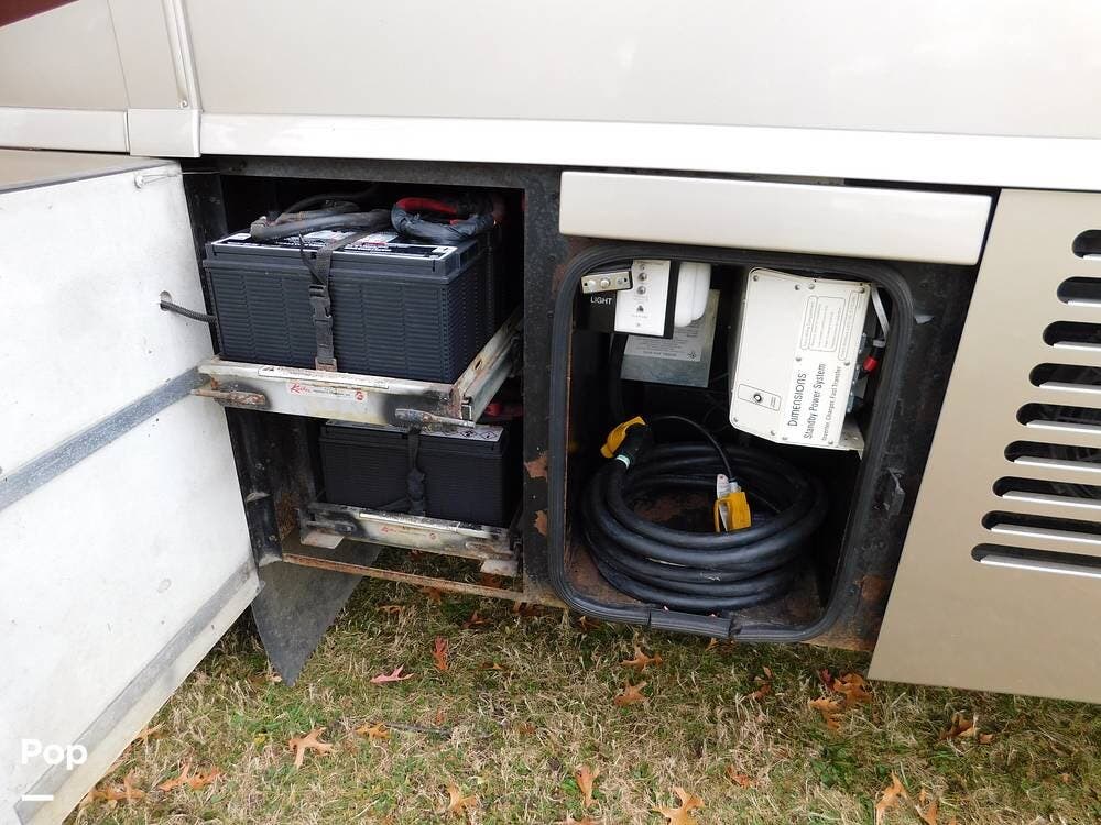 This 2006 Meridian 32T is equipped with essential amenities to enhance the RV lifestyle, such as ducted air conditioning with 2 AC units and central heating for climate control. It has a 7,500-watt generator for off-grid power, and a full entertainment system that includes a TV, DVD player, and sound system. The coach also features an automatic leveling system and a power awning.