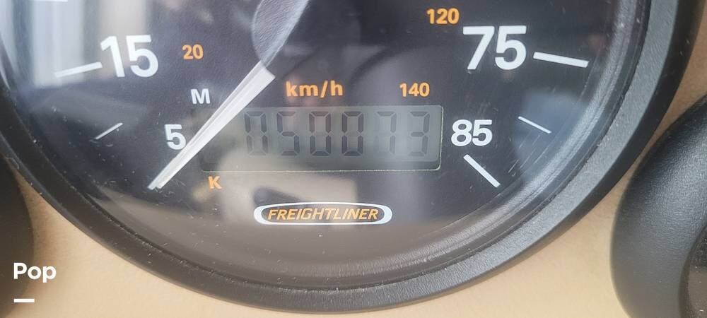 The coach is built on a robust Freightliner chassis and is powered by a rear-mounted Cummins ISB 5.9 Liter turbocharged 300 HP engine, delivering both strong performance and a smoother ride, especially when towing or traversing long stretches of highway.