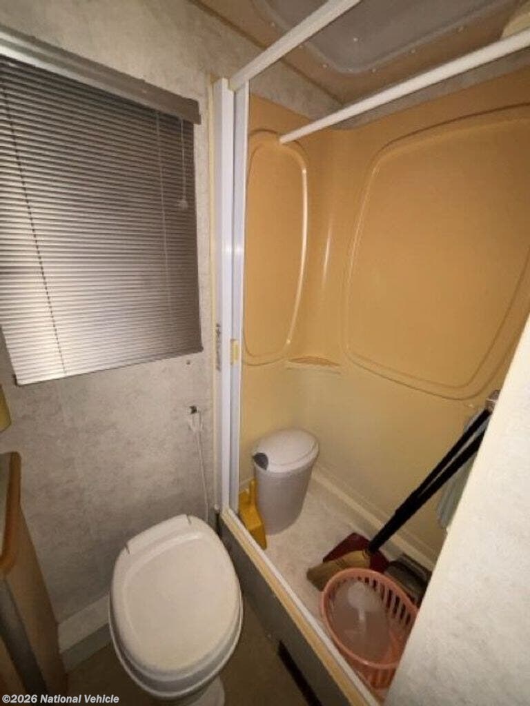 The fully equipped galley features a 3-burner cooktop, microwave, double-door refrigerator, and ample storage?perfect for extended trips or weekend getaways. The split bath design includes a separate shower and private toilet area, giving you convenience and functionality rarely found in a coach this size.