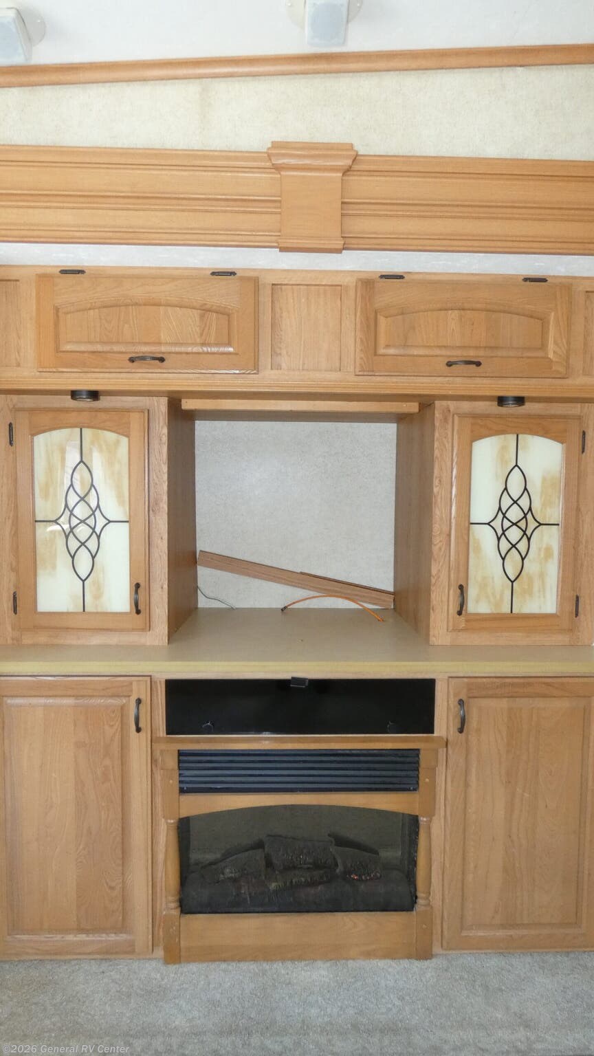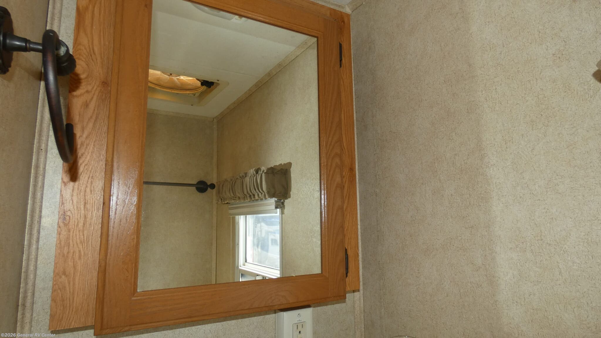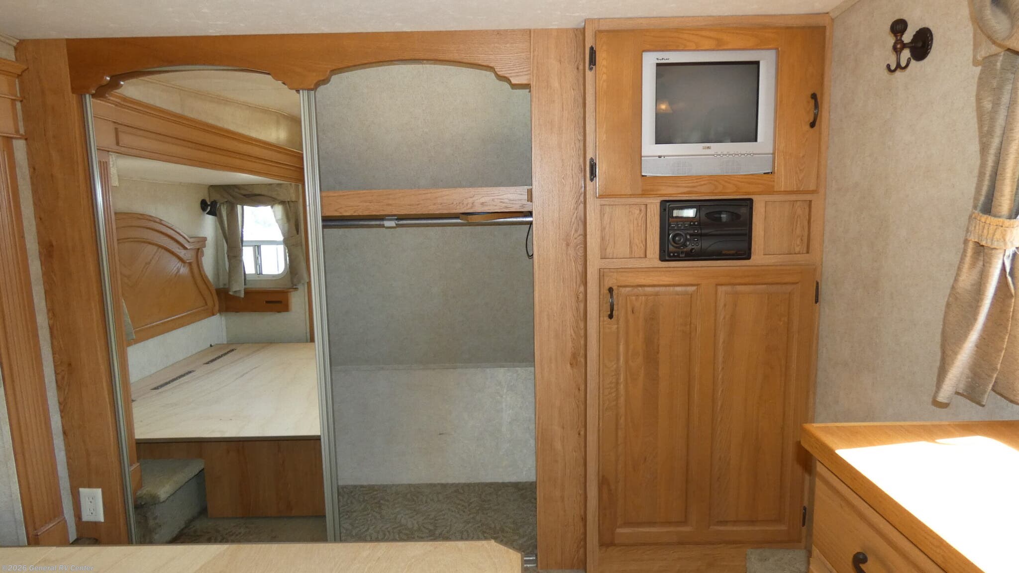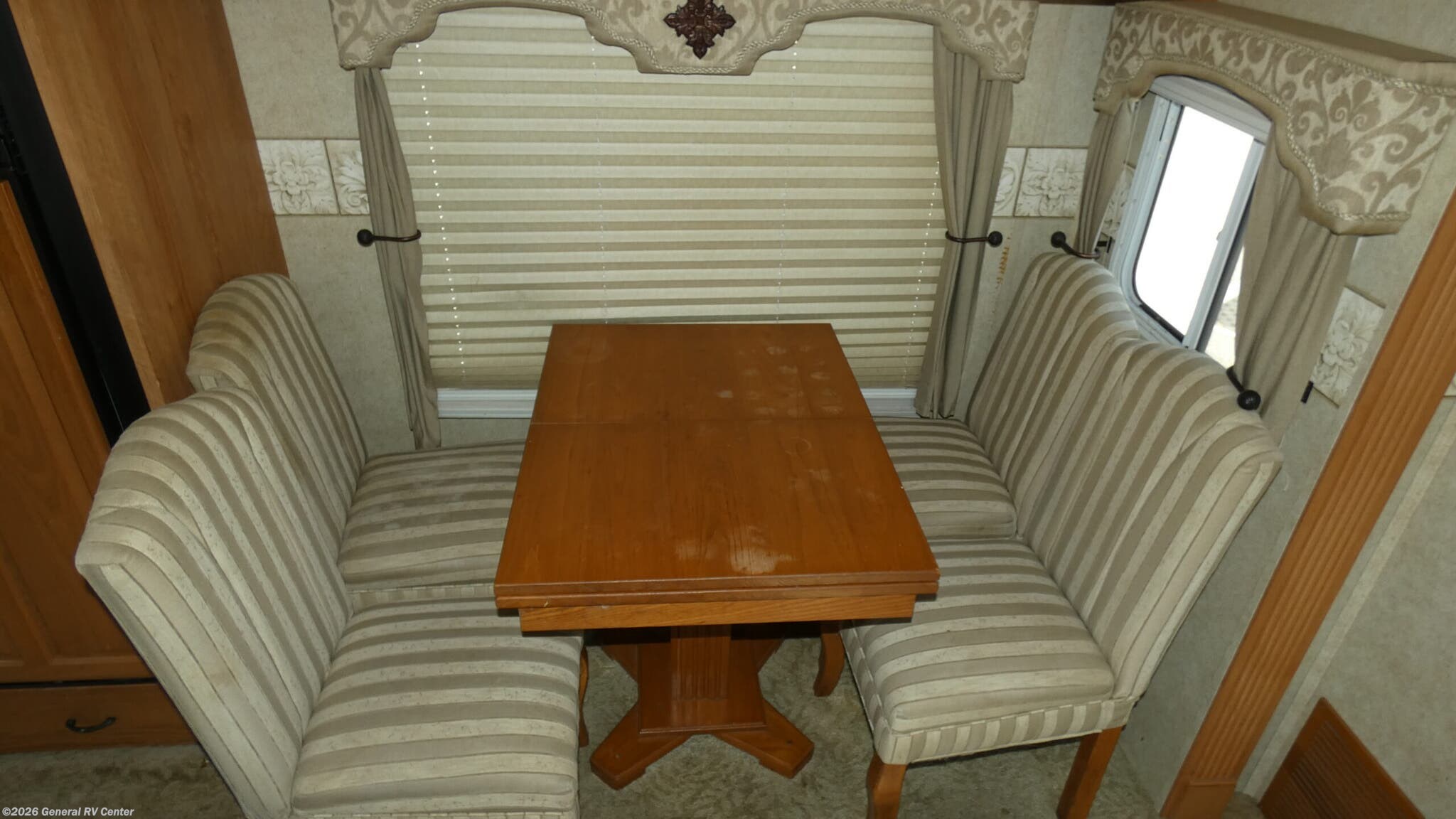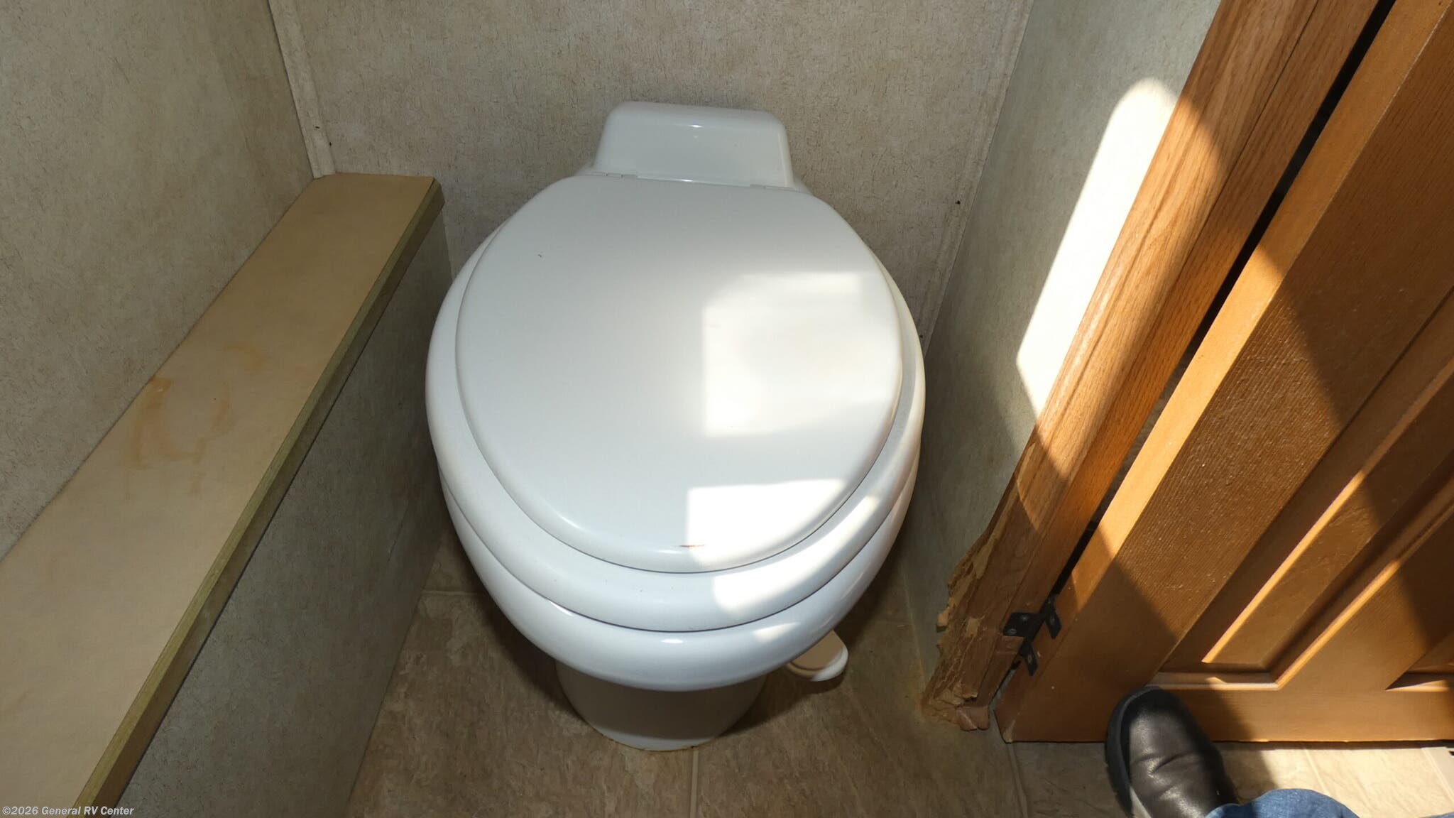 Step into comfort and smart design with this well-appointed fifth wheel featuring a spacious rear living layout and a private front bedroom. The rear living area is designed for relaxation and entertaining, offering dual lounge chairs, a comfortable hide-a-bed sofa for overnight guests, and an entertainment center with overhead cabinetry for ample storage. Large windows create an open, inviting atmosphere with great natural light. The centrally located kitchen is fully equipped with a refrigerator, microwave, range, and generous counter space, along with abundant overhead cabinets for storage. The adjacent free-standing dinette and chairs provide a comfortable space for dining, working, or gathering with friends and family. Up the steps, you’ll find a full bathroom featuring a shower, vanity, toilet, and convenient linen storage. The private front bedroom offers a king-size bed, large wardrobe, and additional cabinetry to keep everything organized and accessible. With thoughtful storage throughout, a functional layout, and comfortable sleeping space for guests, this fifth wheel is ideal for extended stays, seasonal camping, or full-time RV living. Don’t miss the opportunity to own a fifth wheel that combines residential comfort with on-the-road flexibility.