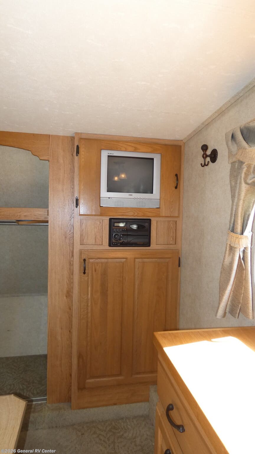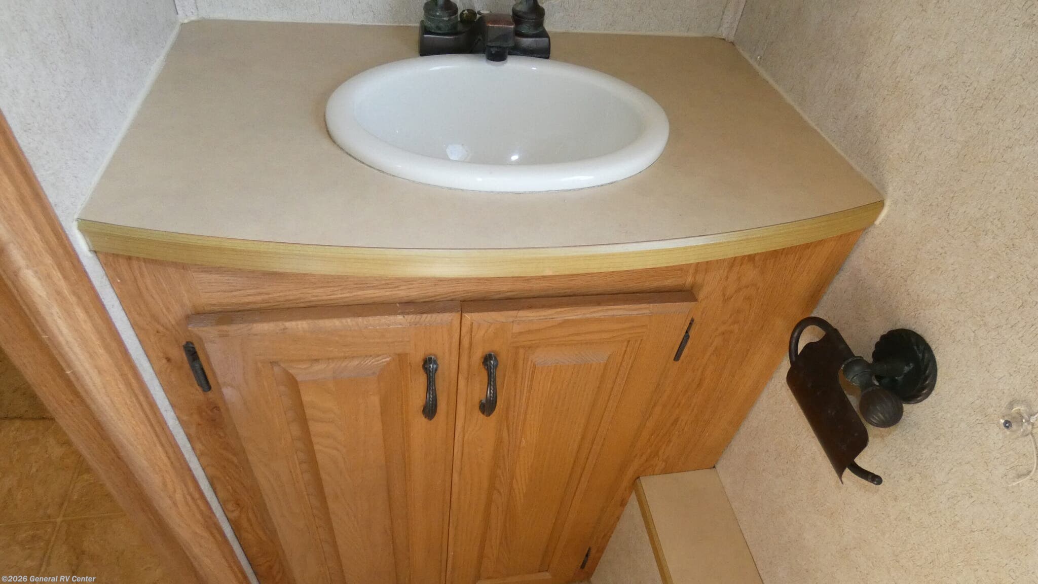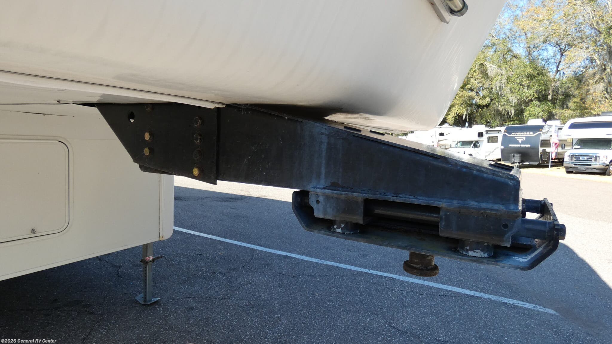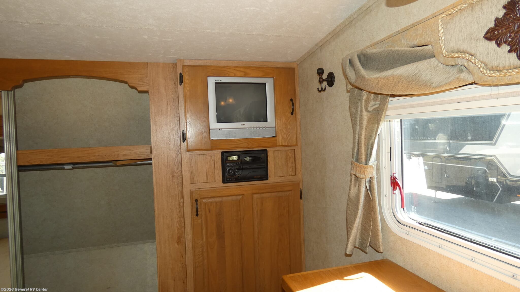 Step into comfort and smart design with this well-appointed fifth wheel featuring a spacious rear living layout and a private front bedroom. The rear living area is designed for relaxation and entertaining, offering dual lounge chairs, a comfortable hide-a-bed sofa for overnight guests, and an entertainment center with overhead cabinetry for ample storage. Large windows create an open, inviting atmosphere with great natural light. The centrally located kitchen is fully equipped with a refrigerator, microwave, range, and generous counter space, along with abundant overhead cabinets for storage. The adjacent free-standing dinette and chairs provide a comfortable space for dining, working, or gathering with friends and family. Up the steps, you’ll find a full bathroom featuring a shower, vanity, toilet, and convenient linen storage. The private front bedroom offers a king-size bed, large wardrobe, and additional cabinetry to keep everything organized and accessible. With thoughtful storage throughout, a functional layout, and comfortable sleeping space for guests, this fifth wheel is ideal for extended stays, seasonal camping, or full-time RV living. Don’t miss the opportunity to own a fifth wheel that combines residential comfort with on-the-road flexibility.