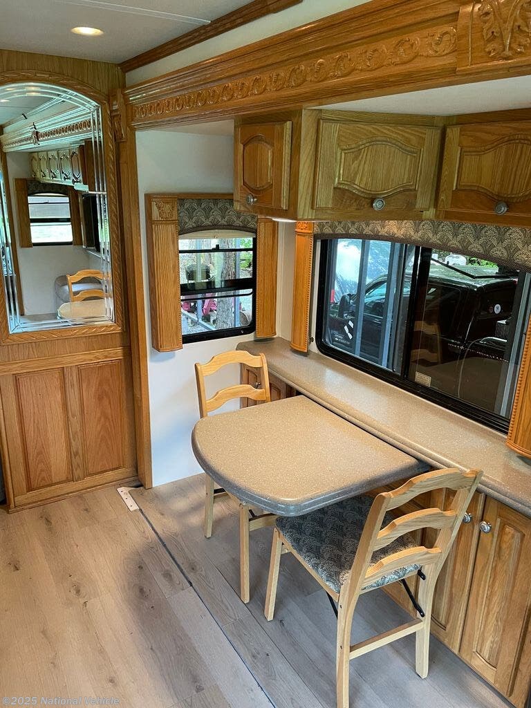 Step inside and take a look back at all of the convenient features that would make any journey enjoyable. The kitchen area features everything you need to prepare great meals on the go including a sink, a two burner range with microwave/convection oven, and a residential refrigerator/freezer with an ice maker. There is also plenty of storage for all of your dry and canned goods. Have a seat at the comfortable free standing dinette, where you can enjoy meals with your family.