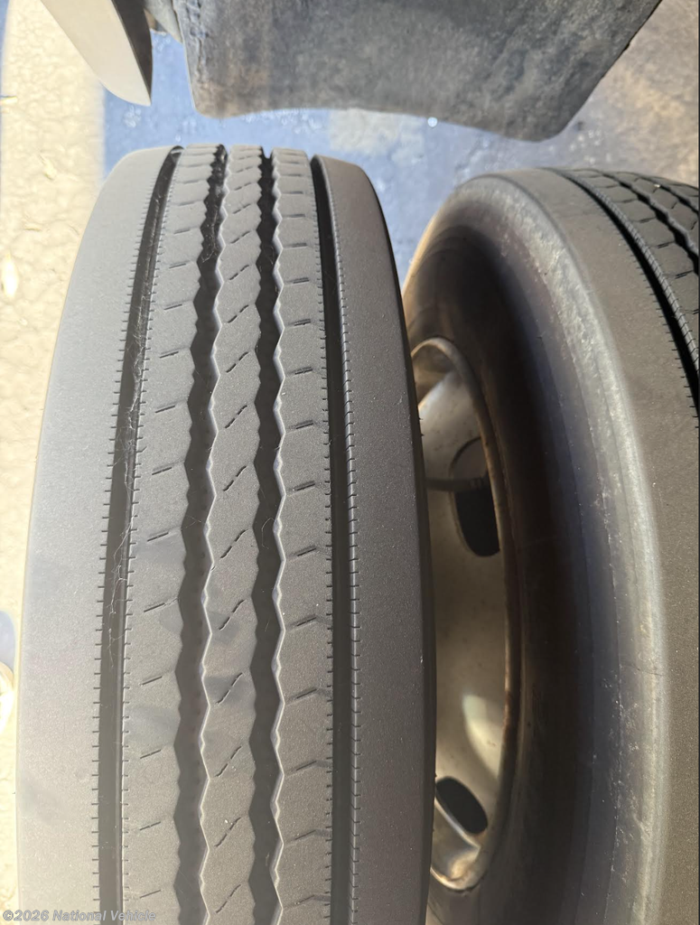 The master bedroom offers a queen bed with ample wardrobe storage, while the private bathroom includes a large glass-enclosed shower and solid-surface vanity. With an Onan generator, and automatic leveling jacks, comfort and convenience travel with you wherever you go.