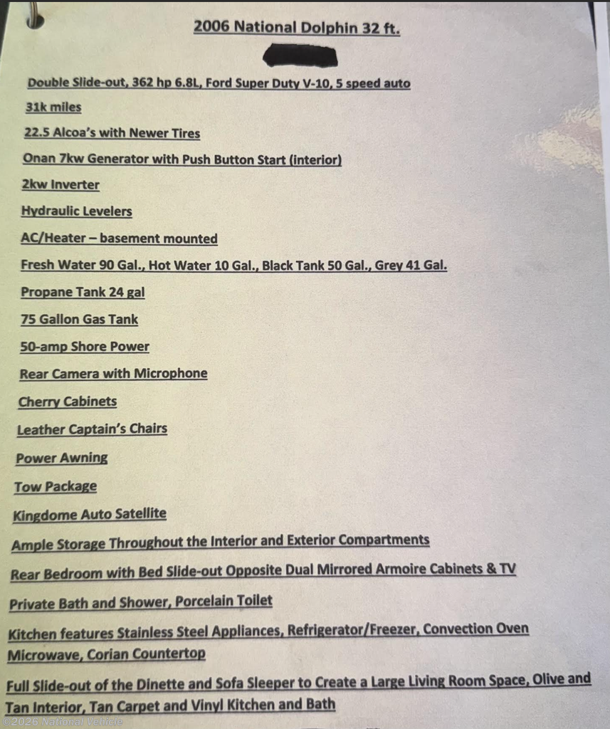Request More Info on this 2006 National RV Dolphin 5320 Offered for sale by National Vehicle