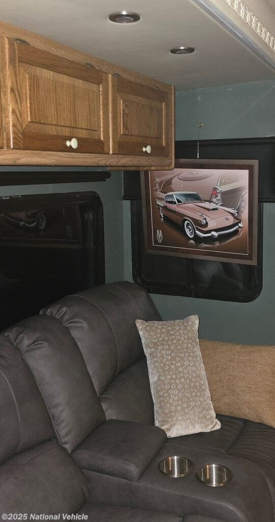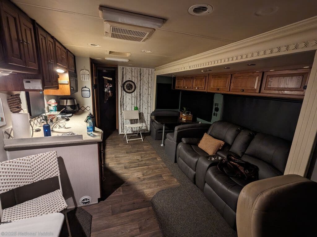 Inside, the Phaeton 35DH boasts a spacious and thoughtfully designed floor plan. The living area features two slide-outs, enhancing the interior's openness. The kitchen is equipped with solid-surface countertops, a convection microwave, a refrigerator, and ample cabinetry, making meal preparation both convenient and enjoyable.