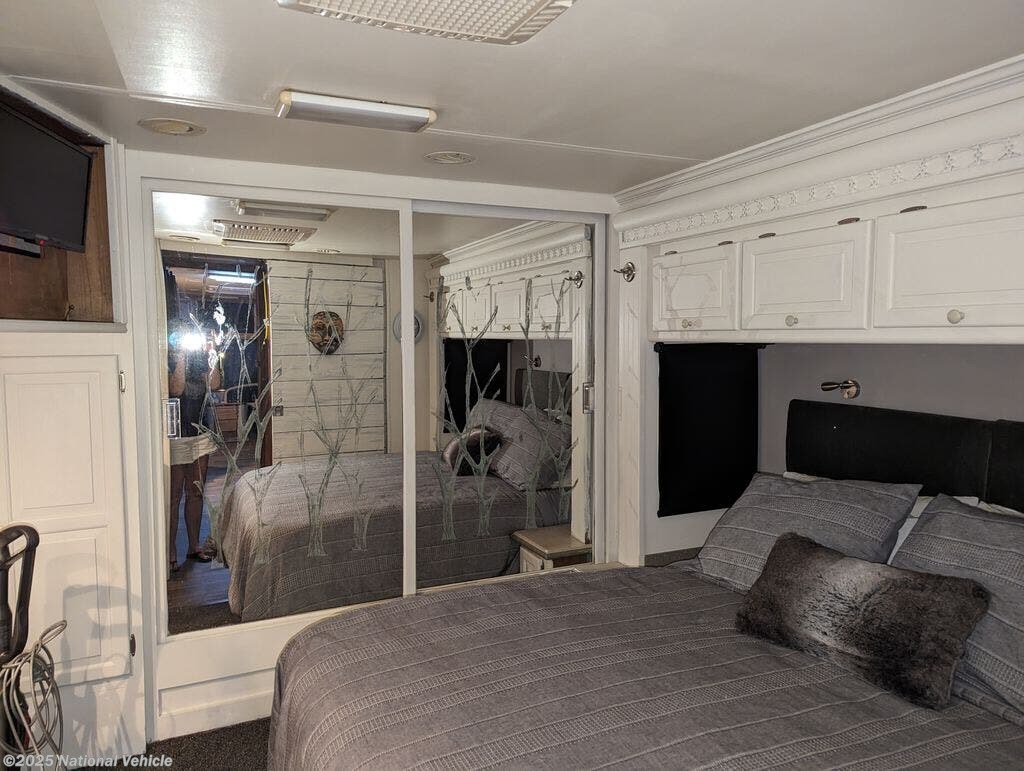 Additional amenities include a 7.5 kW Onan generator, dual 15,000 BTU air conditioners, and a 42,000 BTU central heating system, ensuring comfort in various climates.