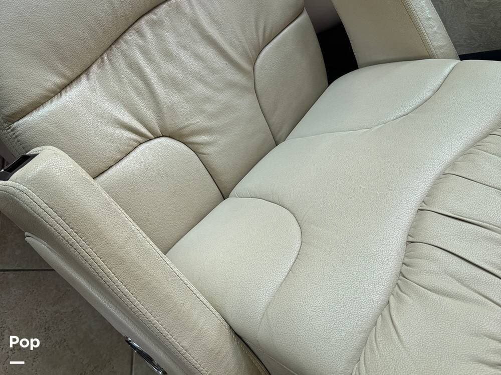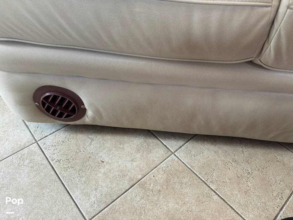 The captain's chairs are soft and very comfortable. They rotate around for extra seating in the living area. The living room has both a pullout sofa and a jackknife sofa, so you have plenty of comfy seating as well as extra sleeping space.