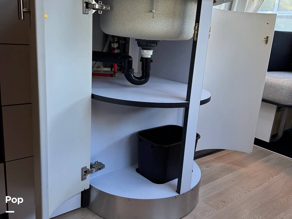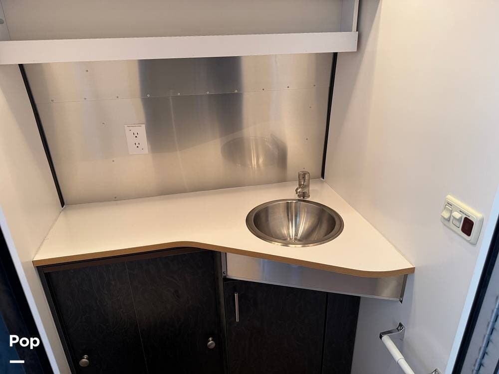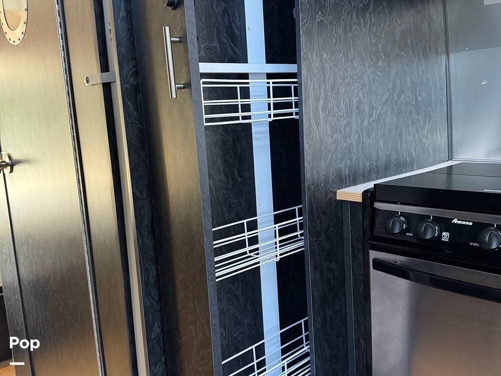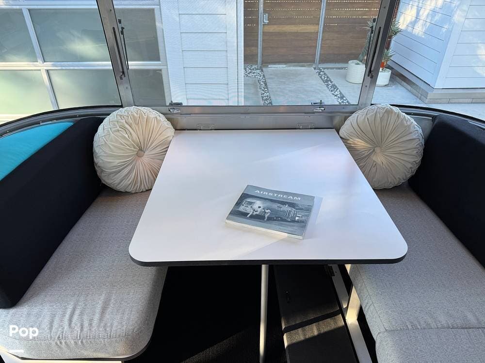 The galley is efficiently designed with good counter space, storage, and appliances positioned for easy use on the road. The open flow between the kitchen and dinette helps the trailer feel larger than its footprint, while well-placed storage throughout keeps gear organized and accessible.