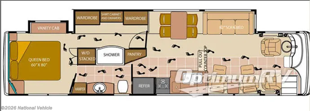 With a rare dual hallway design, this coach allows for easy access to both the bedroom and bathroom, making it ideal for couples or guests without interrupting each other?s space.