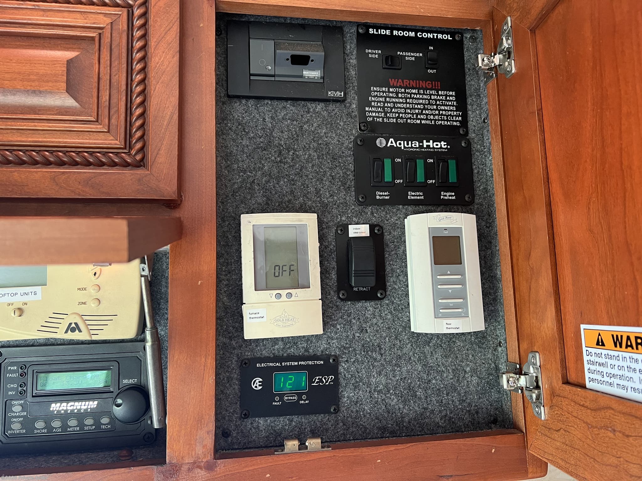 Gel HOUSE batteries – 4/23 new engine STARTING batteries, 10/1/24chassis greased, oil w/filter changed, all new engine belts (saved old ones)all water, radiator, hydraulic ,fuel and air filter changed same with generator.Toro 295/80R22.5 front tires all done 4/23.