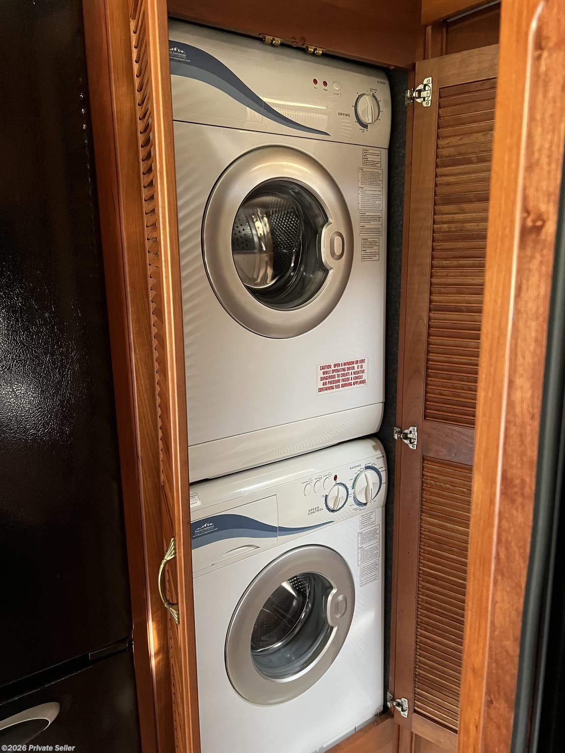4 Door Gas/110V Norcold Refrigerator, In-Fridge Ice Maker, s seeKing Size Sleep Number Bed, Automatic Main Awning And Window/Slide/Door Awnings, Washer/Dryer, Backup Camera, Heated Tanks Convection Microwave, and 2 BurRange.Heated Flores 3 a/c units and heated floors