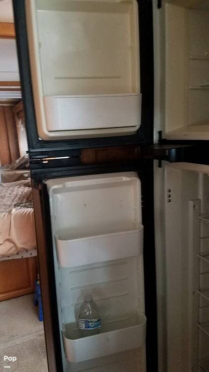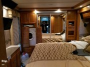 The coach is very spacious, with ample room and opposing slides. This RV features a full-wall slide, providing spacious living and sleeping areas.