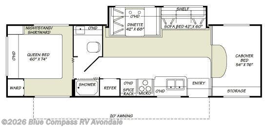 Single Slide, Rear Queen Bed w/Nightstand & Shirt Wardrobe, Shower, Separate Stool Room w/Lav., Booth Dinette & Sofa Bed Slideout, Refrigerator, Spice Rack, 3 Burner Range, Microwave, Double Kitchen Sink, Cabover Bed, Storage Above Cab & More.