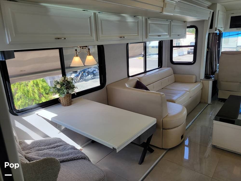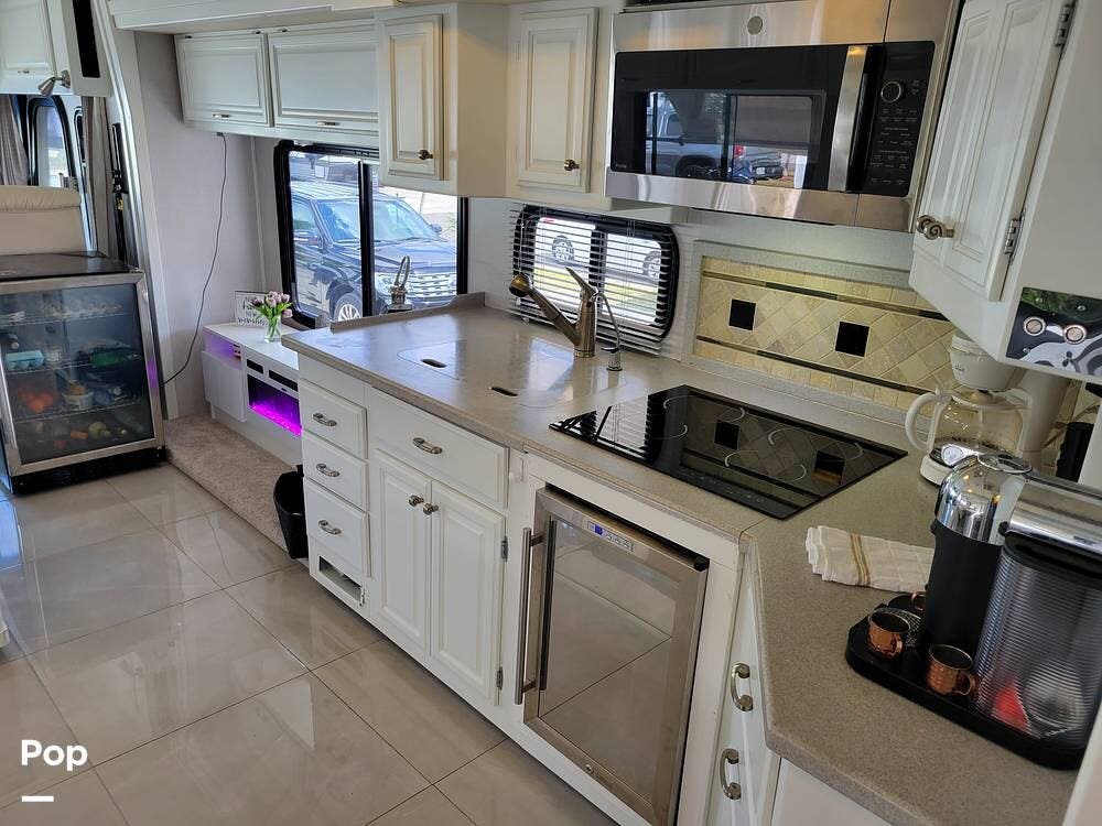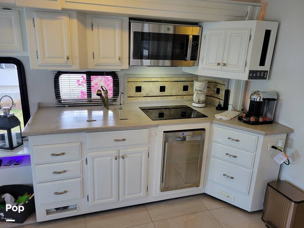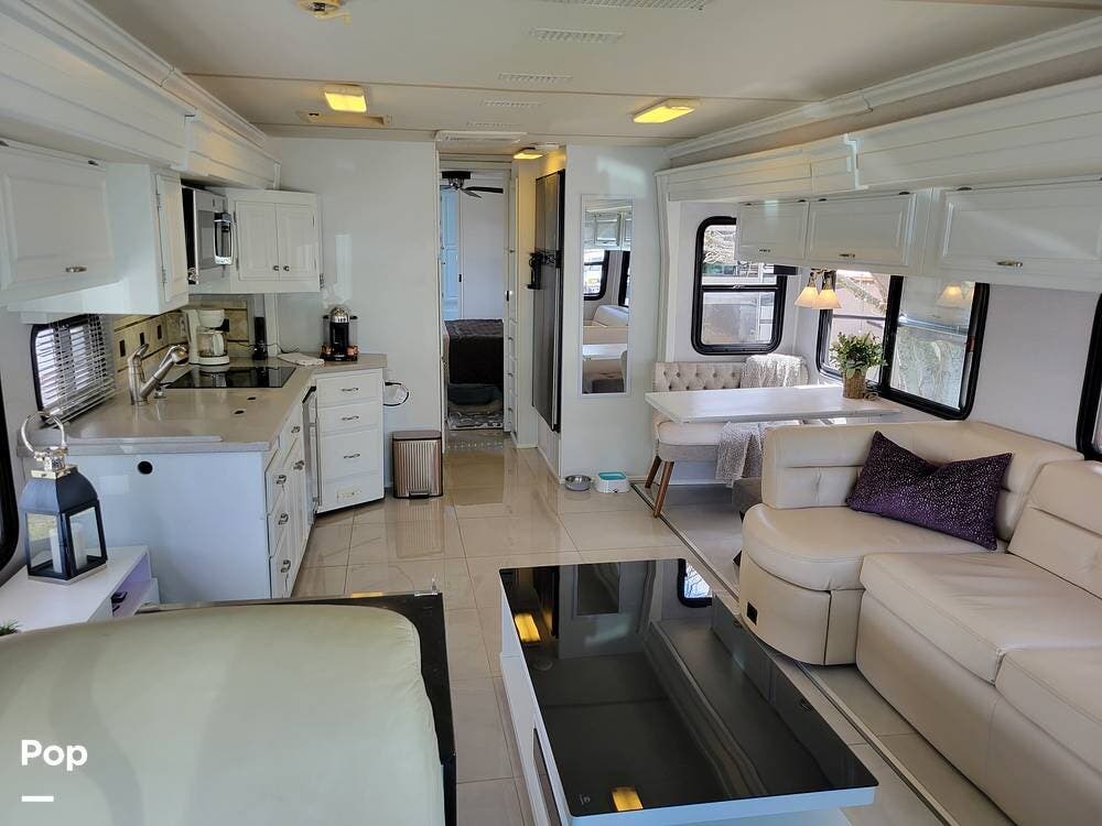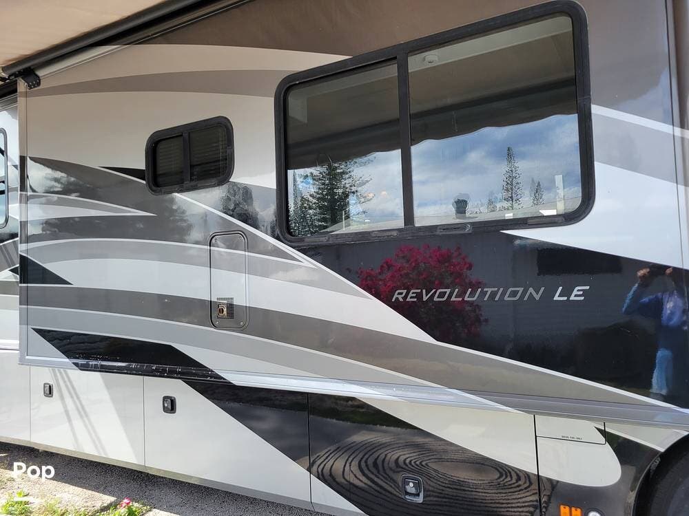 This Revolution LE 40E had the complete interior renovated. It looks stunning and feels much like a home instead of an rv. There are 3 large slide outs to provide extra space. This coach has a half bath and spacious full bath.