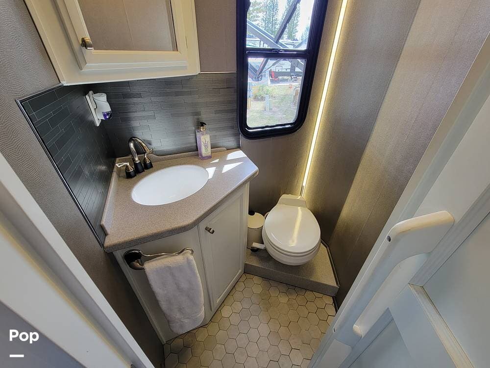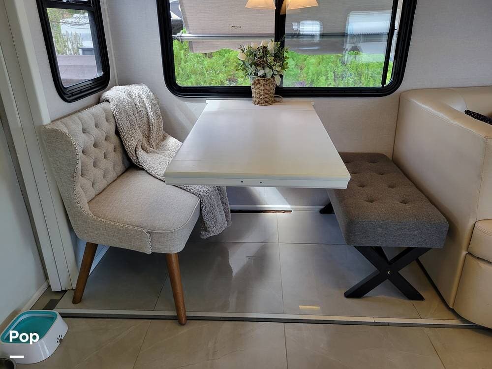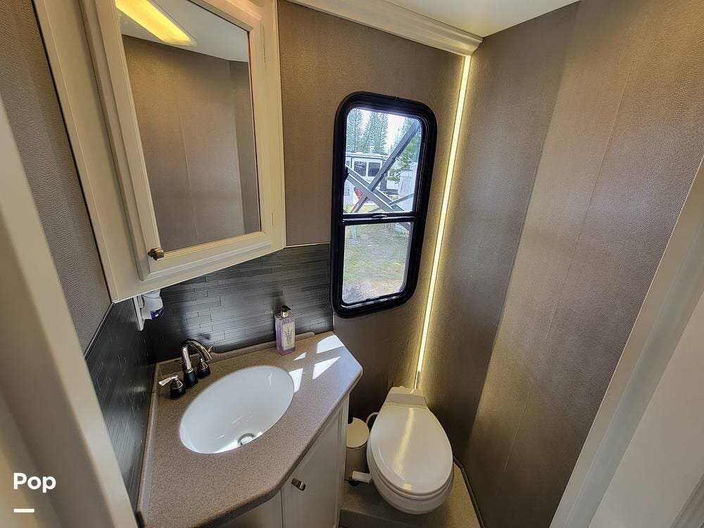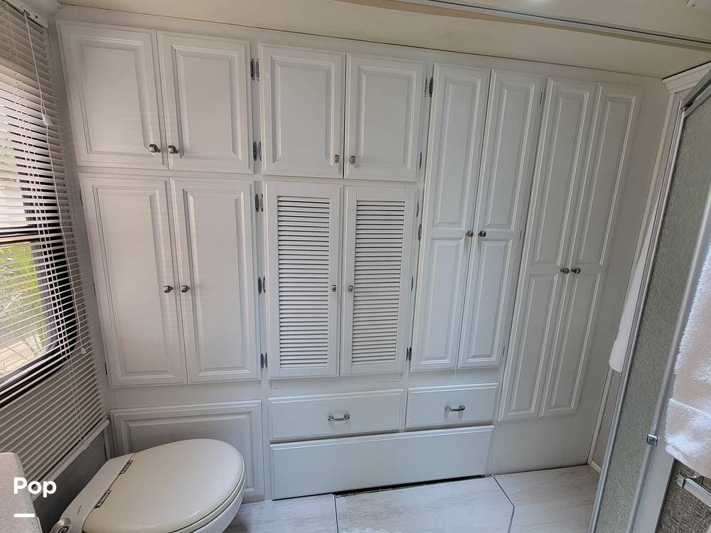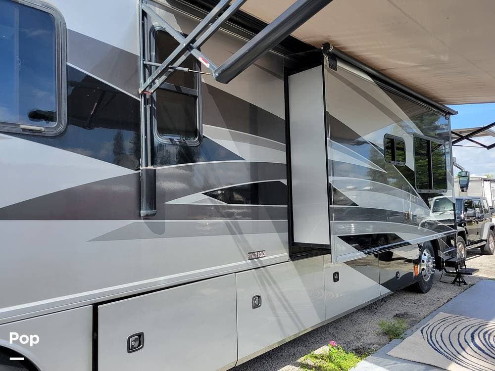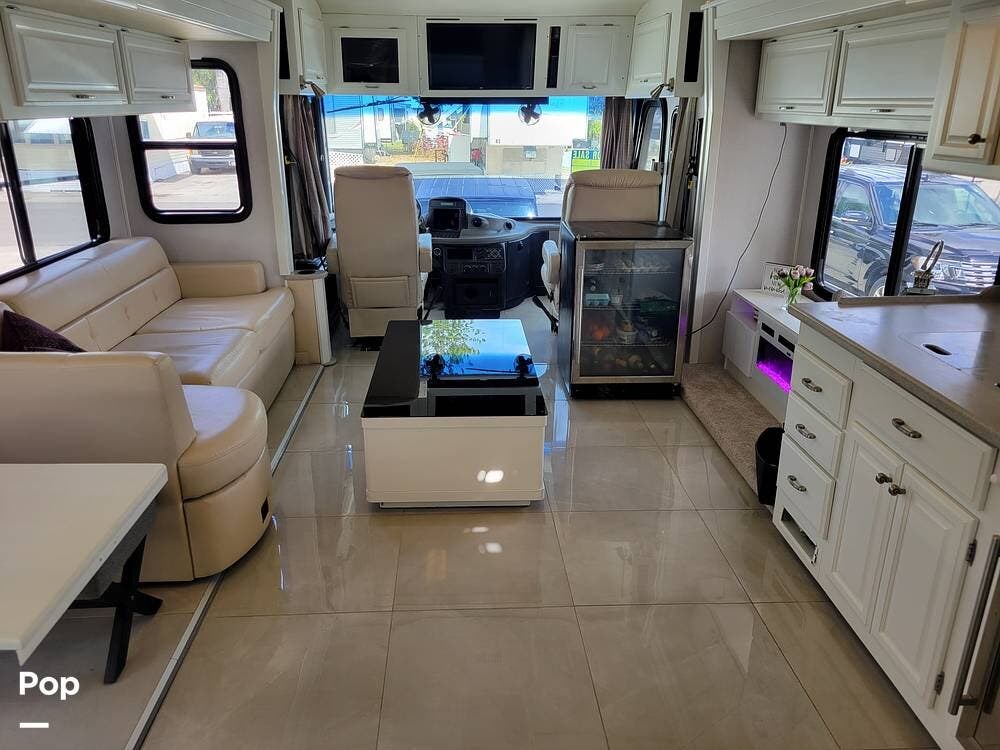 This Revolution LE 40E had the complete interior renovated. It looks stunning and feels much like a home instead of an rv. There are 3 large slide outs to provide extra space. This coach has a half bath and spacious full bath.
