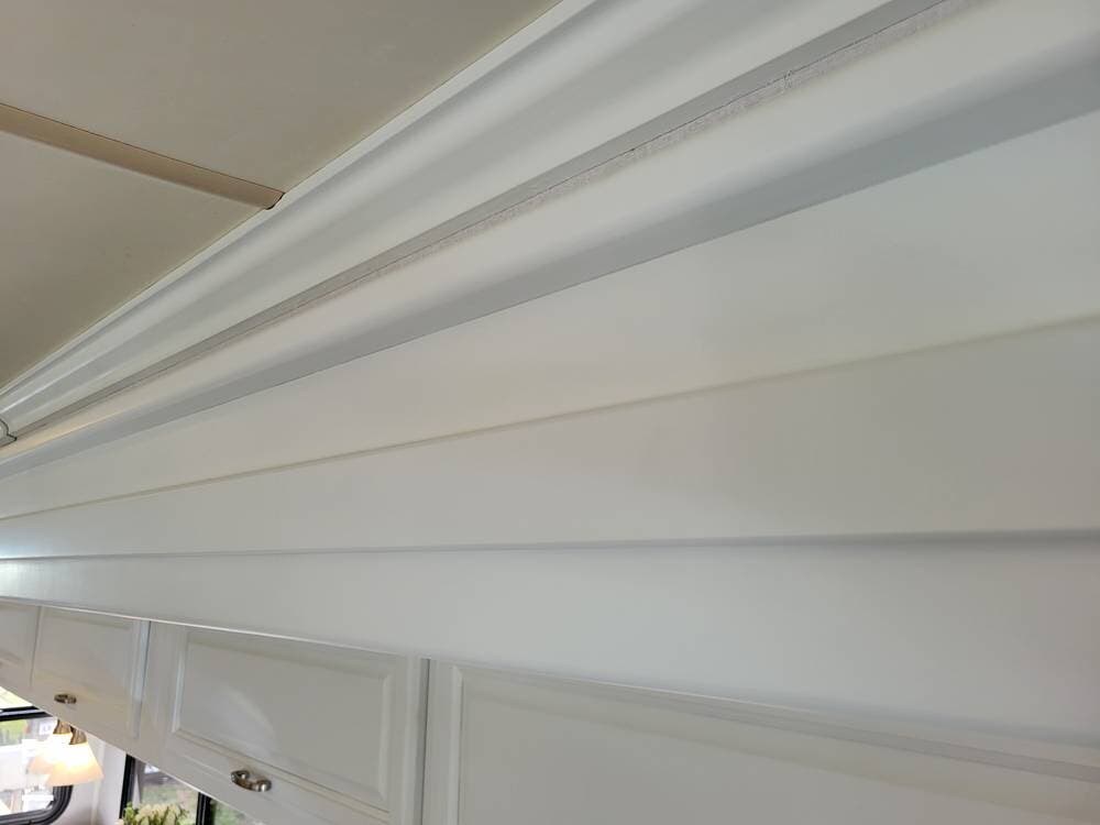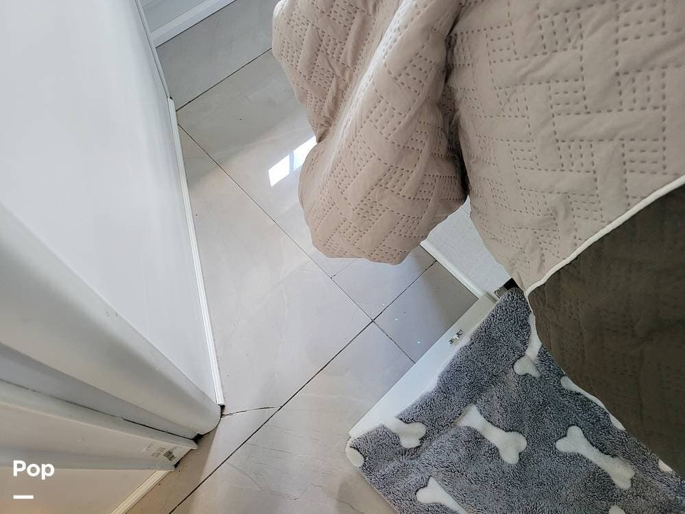 Upon entering you will be pleasantly surprised to see how bright and clean the unit looks. The shiny large tile floor looks great. The seller sprayed all of the wood with white lacquer paint. The finish looks amazing and very professional.