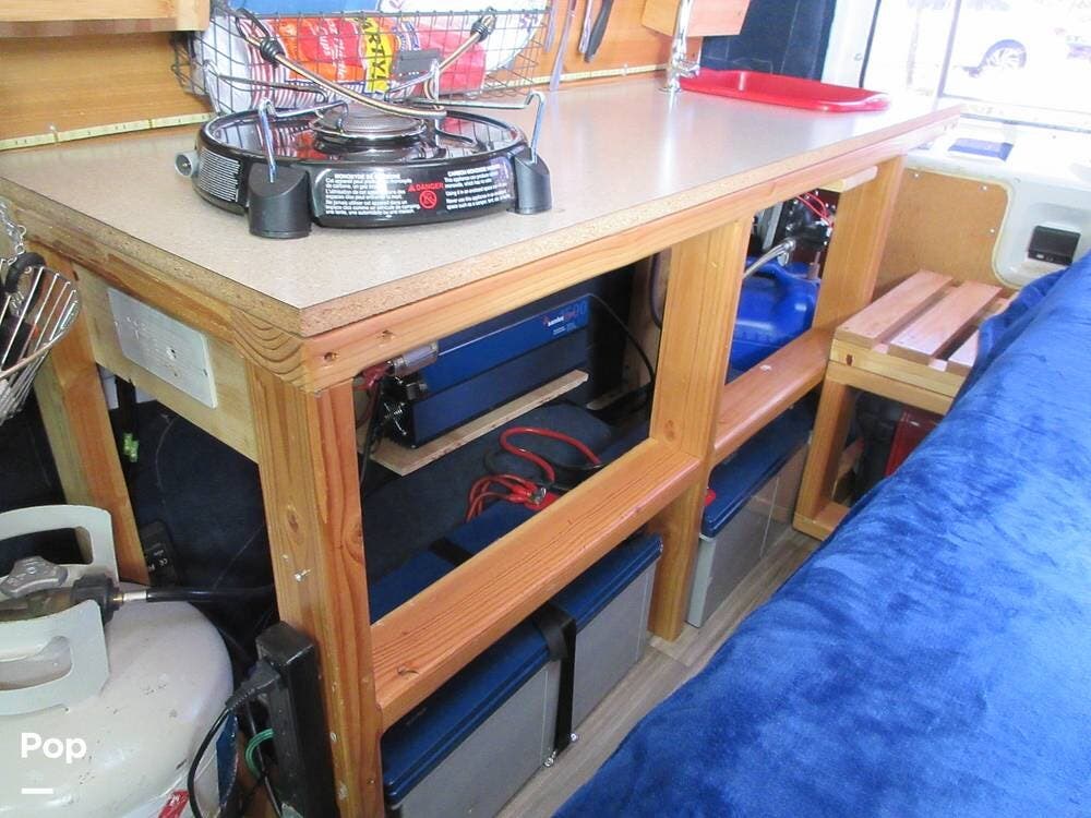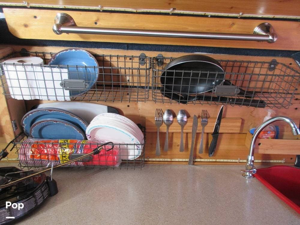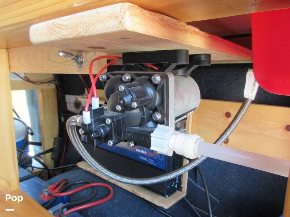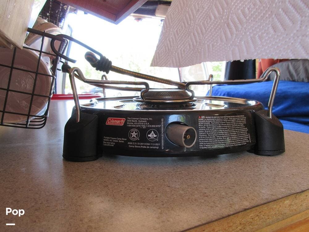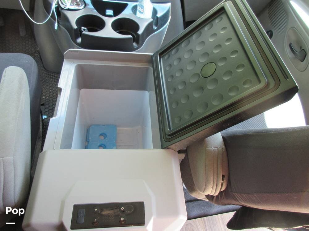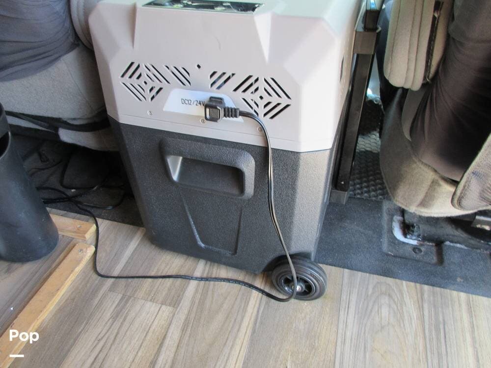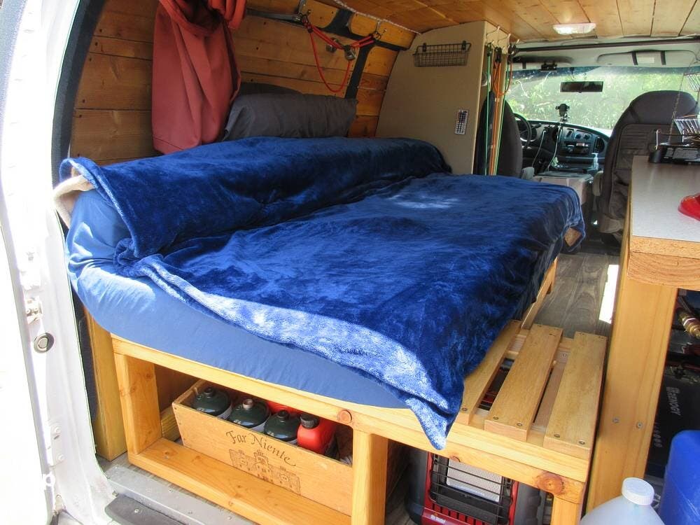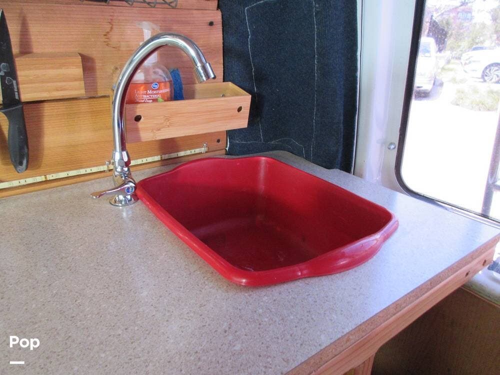 Want to save money on meals while you are on the road? This van can assist with a mini 12V refrigerator and a one-burner propane stove with a propane tank. Plus, clean-up is a breeze with the built-in removable sink. Freshwater is provided via a 6-gallon container using an electric pump.