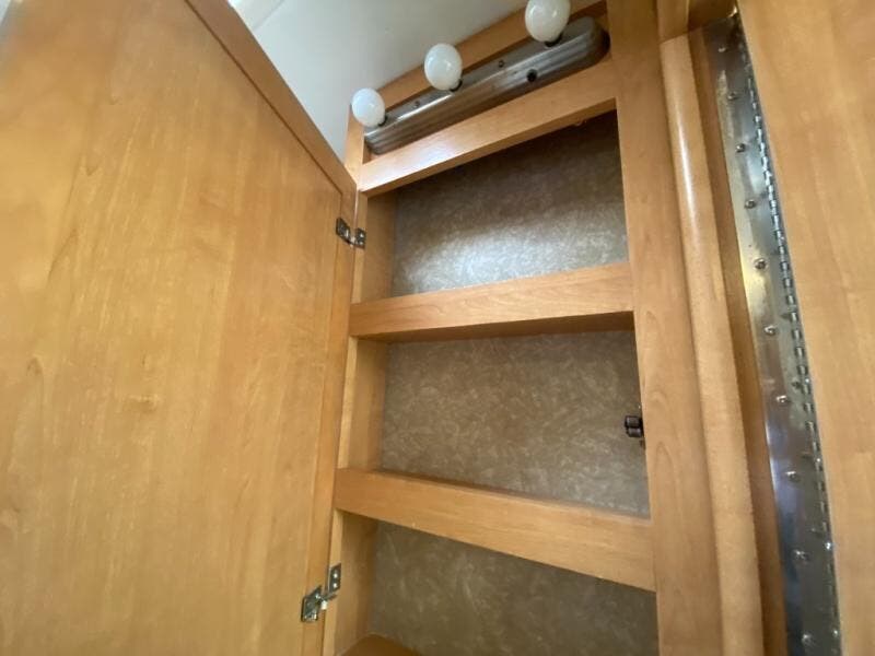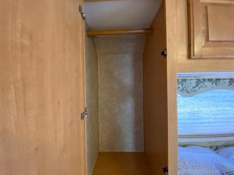 Single Slide, Rear Queen Bed w/Shirt Closet, Nightstand, Wardrobe, Opt. Twin Beds w/Wardrobe Between Instead, TV, Seperate Stool Room, Shower, Pantry, Refrigerator, 3 Burner Range, Microwave, Double Kitchen Sink, Booth Dinette & Sofa Slideout, Barrel Chair w/TV Above, Bunk Over Cab Area and More.
