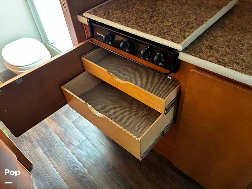 Known for its compact size and easy drivability, this RV features a single slide-out, sleeping for up to four, and a full rear bathroom. At just under 24 feet long, it offers a smart and functional layout ideal for travel and camping.