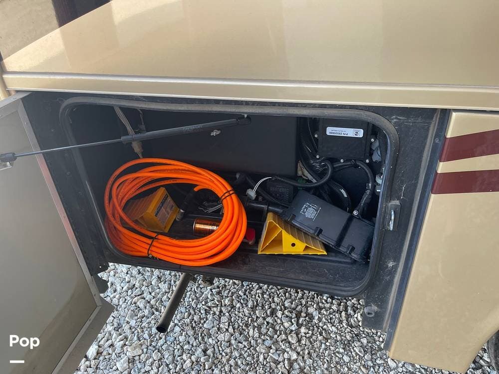 This coach is self-sustained with an Onan 8.0kW QD generator that purrs like a kitten and can run both A/Cs, and has a 100-gallon fuel tank if you want to stay in one place for an extended period of time.