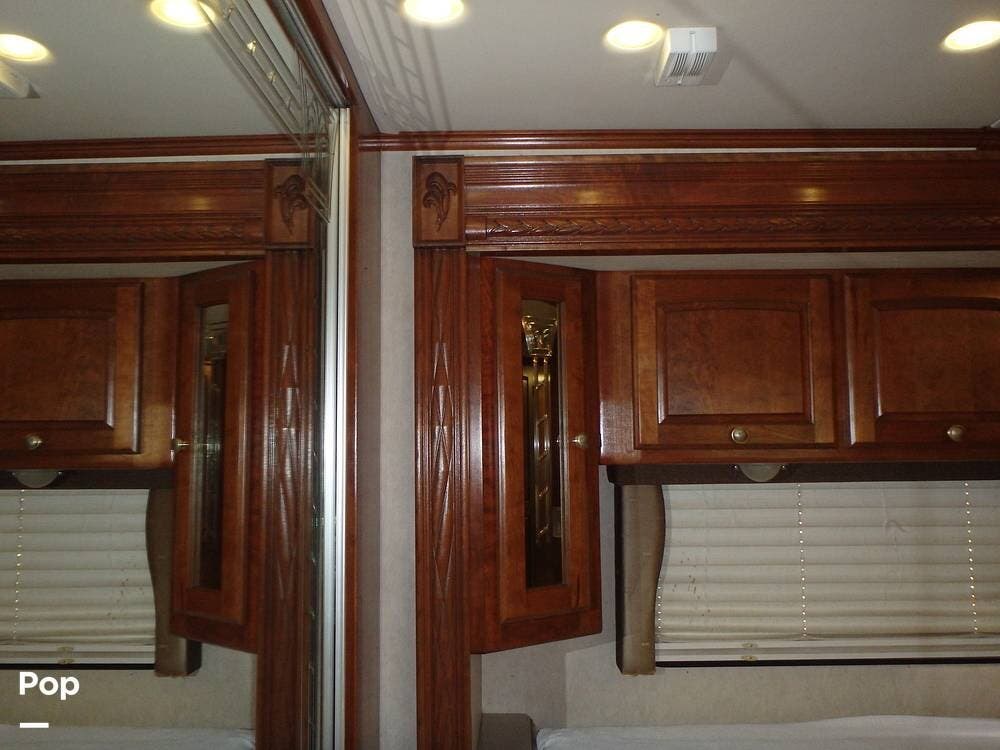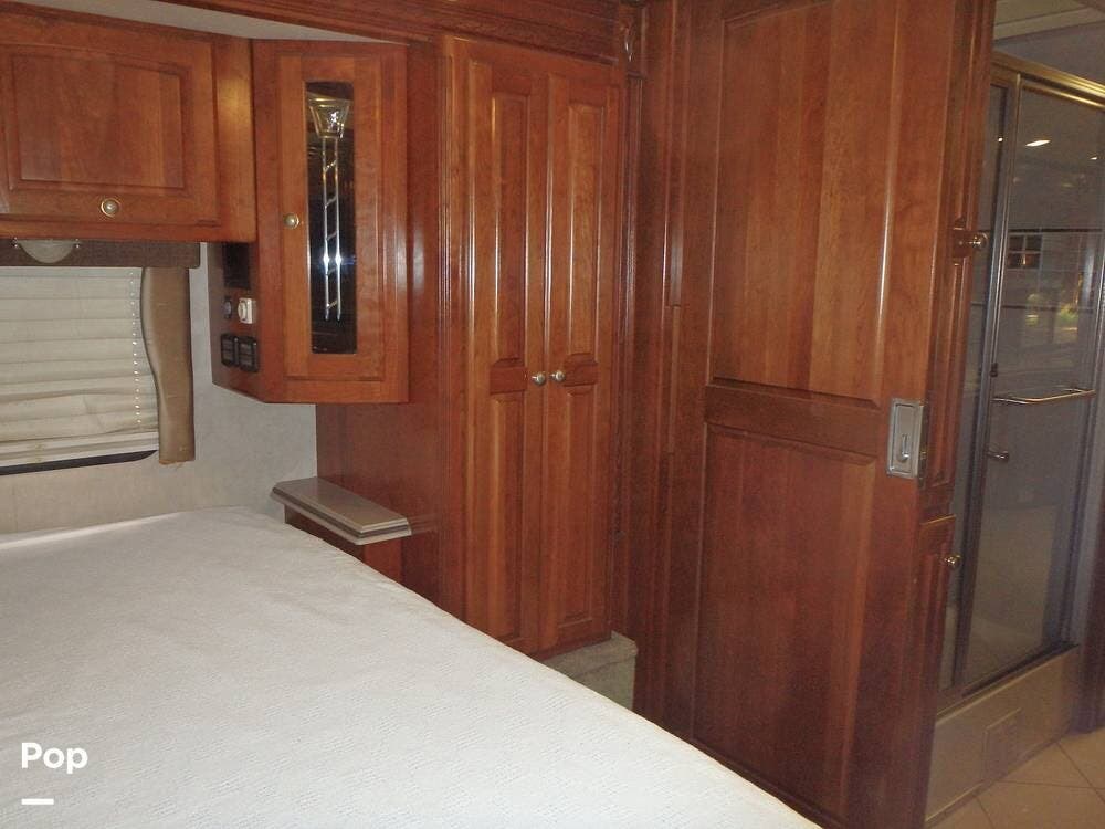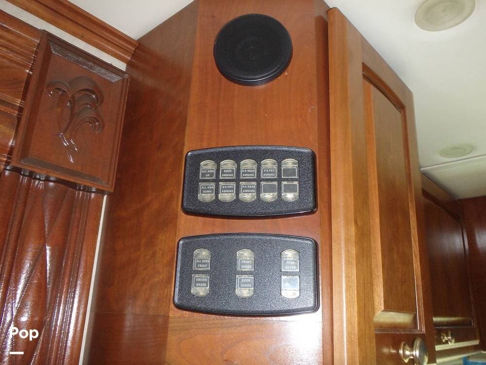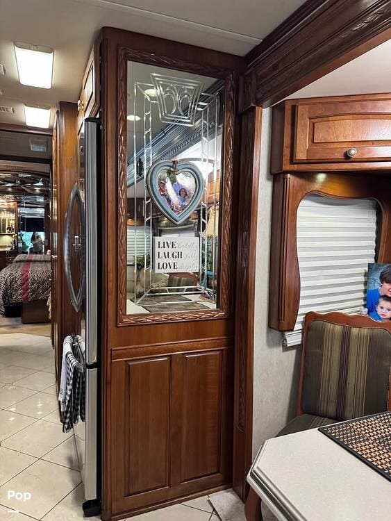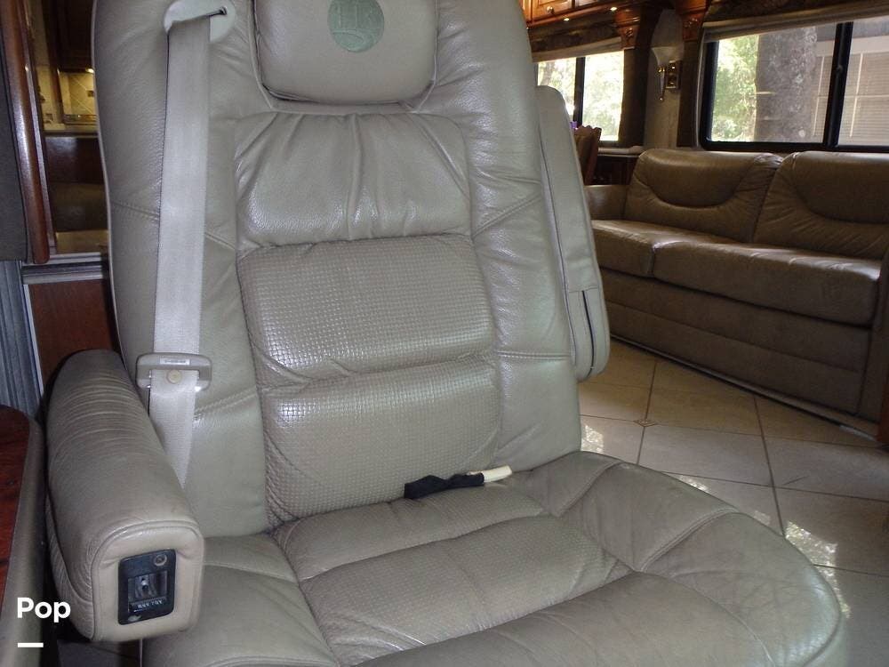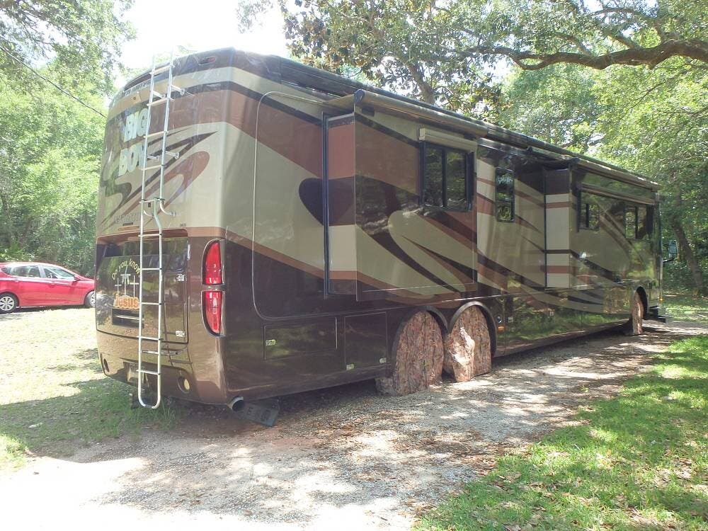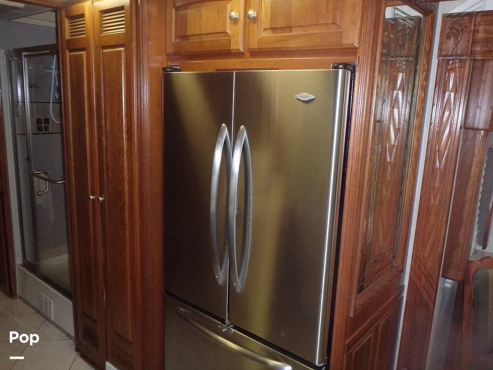 The owner loves the automatic power day/night shades, the full-size residential refrigerator with built-in water dispenser and ice maker, the tankless water heater that keeps constant hot water, the full-size washer and dryer, and the overall luxurious feel of this coach, which makes it feel like home.