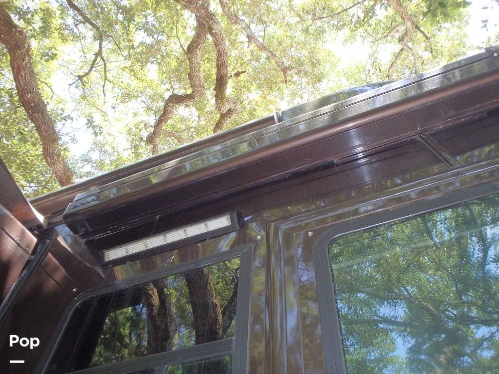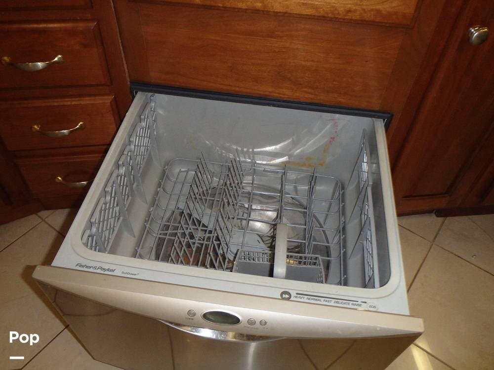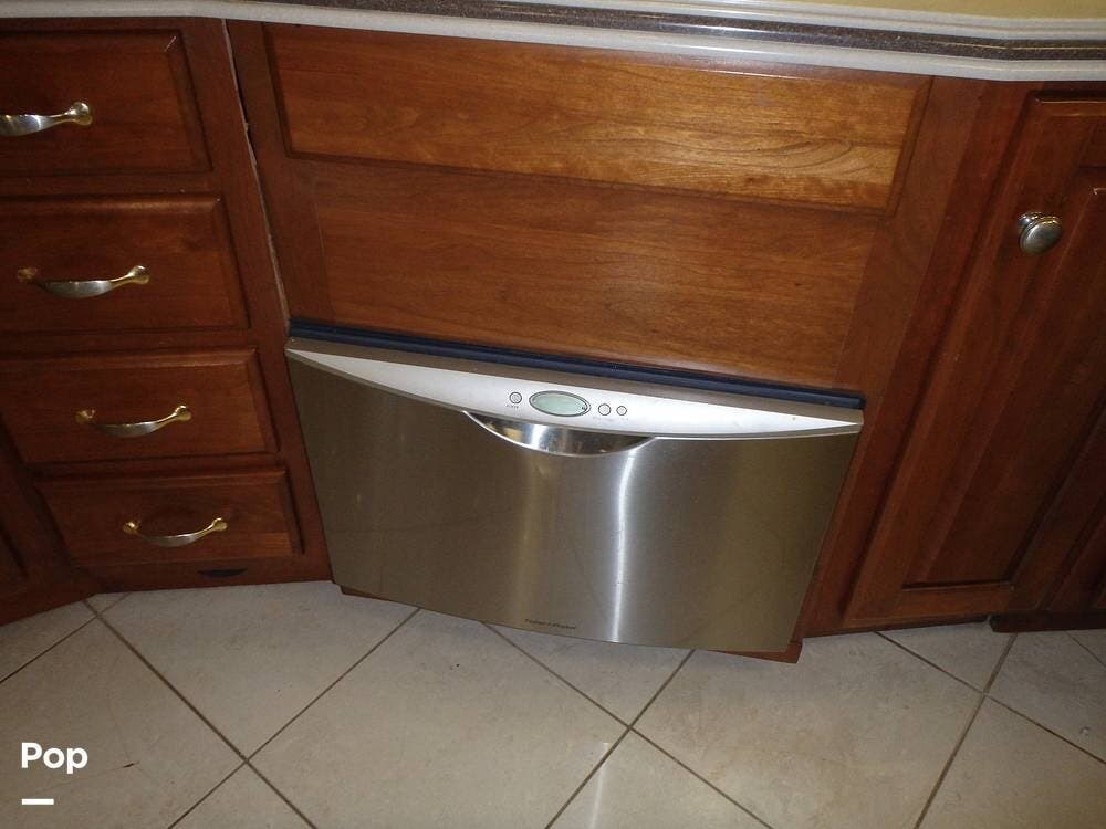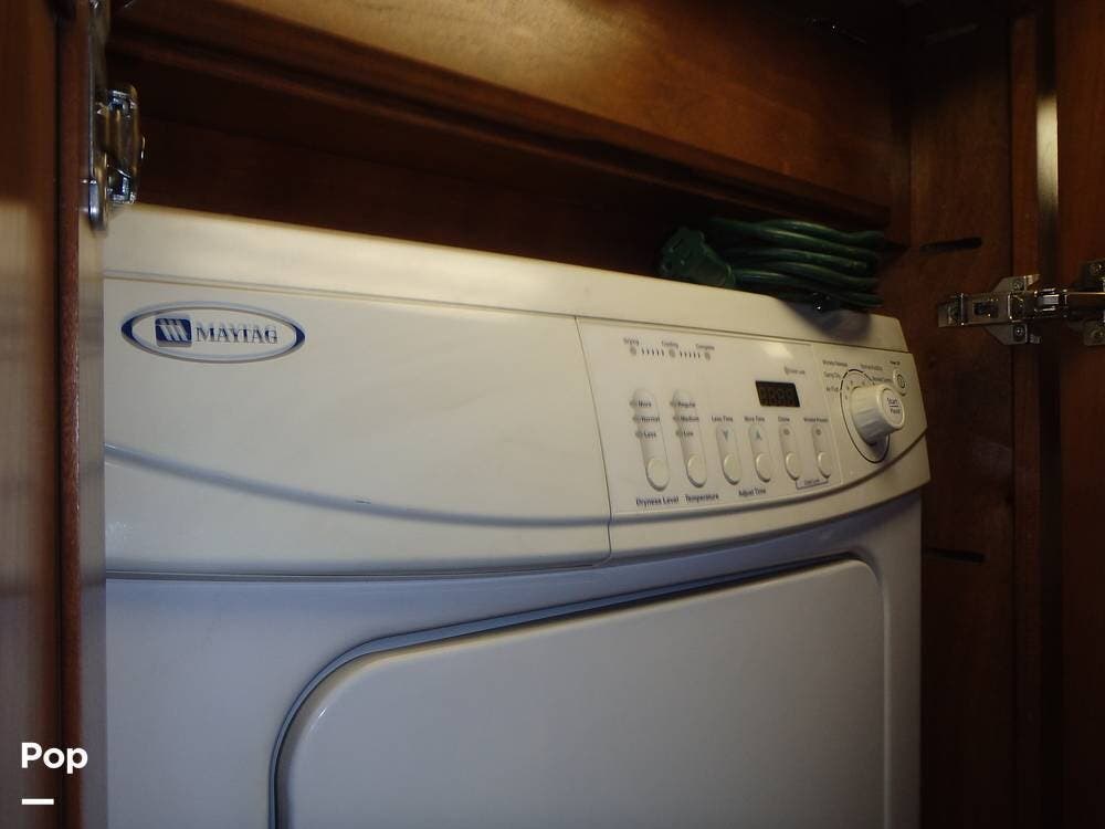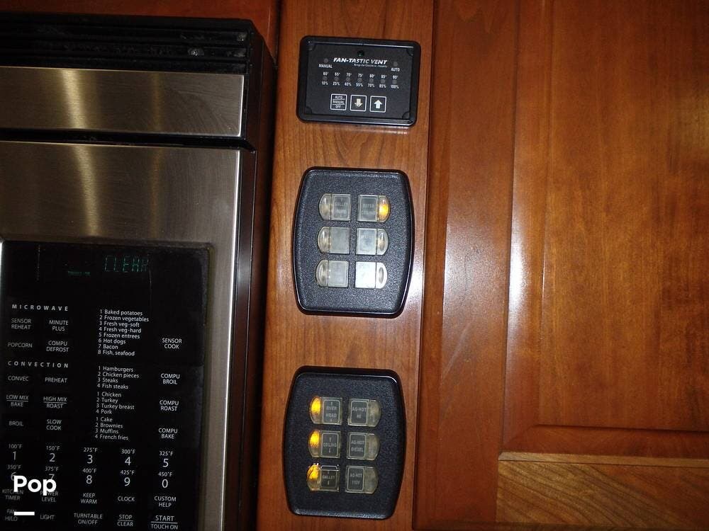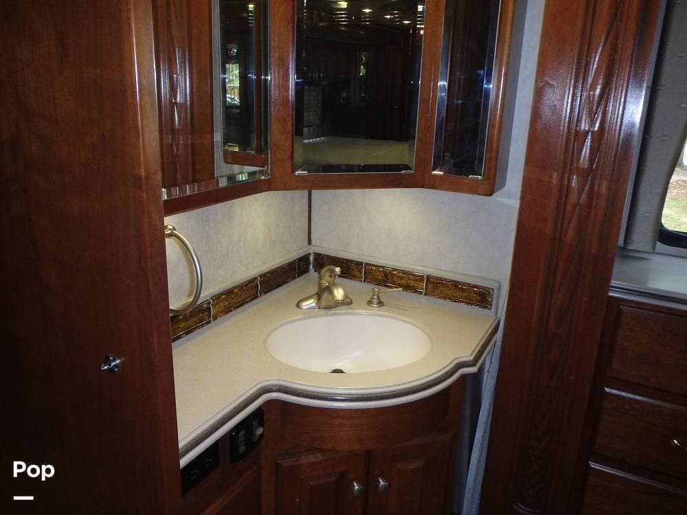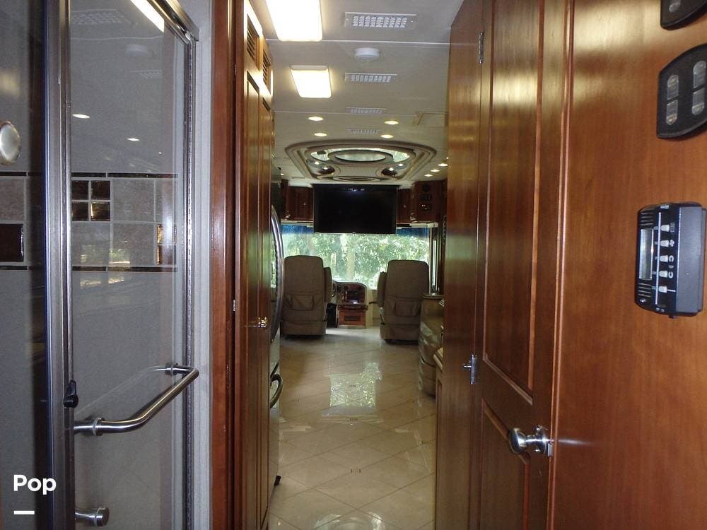 The owner loves the automatic power day/night shades, the full-size residential refrigerator with built-in water dispenser and ice maker, the tankless water heater that keeps constant hot water, the full-size washer and dryer, and the overall luxurious feel of this coach, which makes it feel like home.