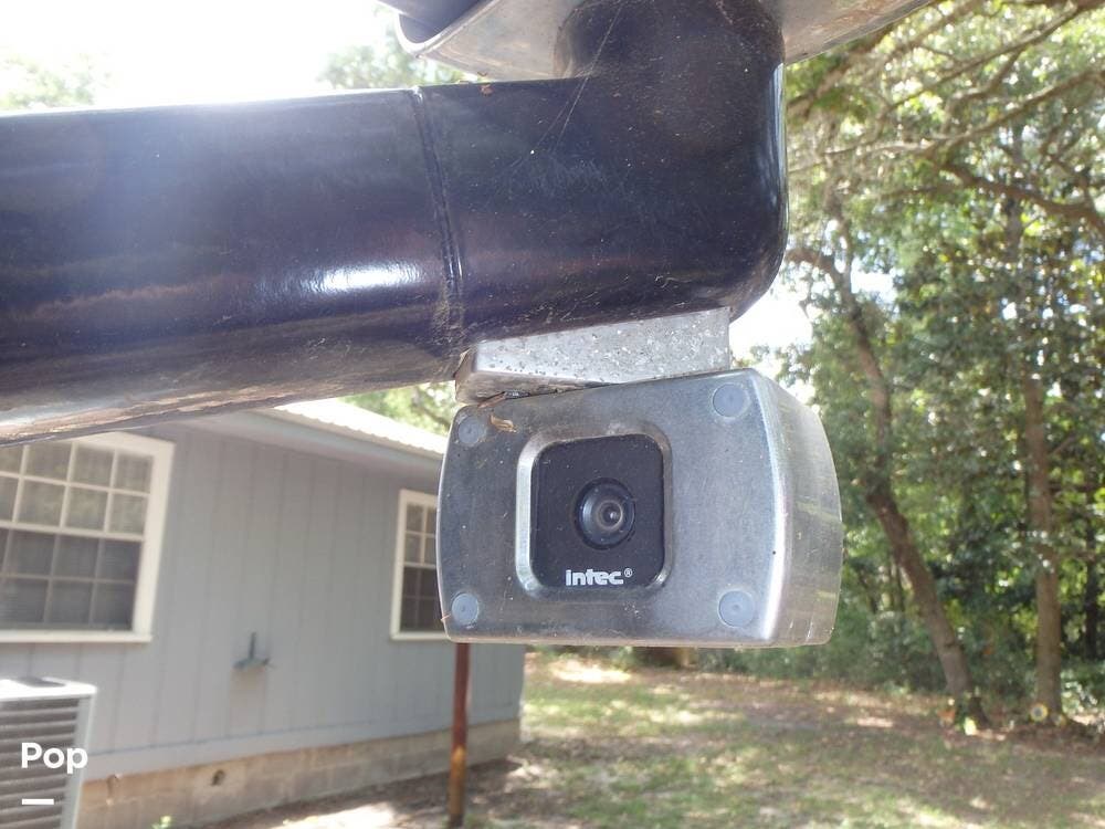The master bedroom offers a king-size bamboo bed, a full camera system installed, plenty of storage, and a second TV, while the rear bathroom features a large shower with a glass enclosure, a solid-surface vanity, and a full-size Maytag washer and dryer.