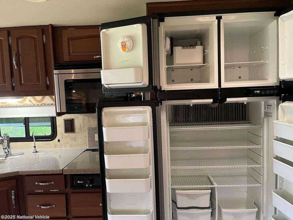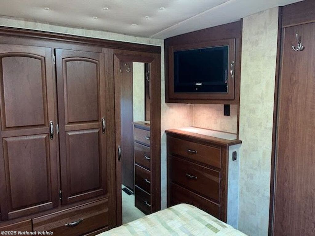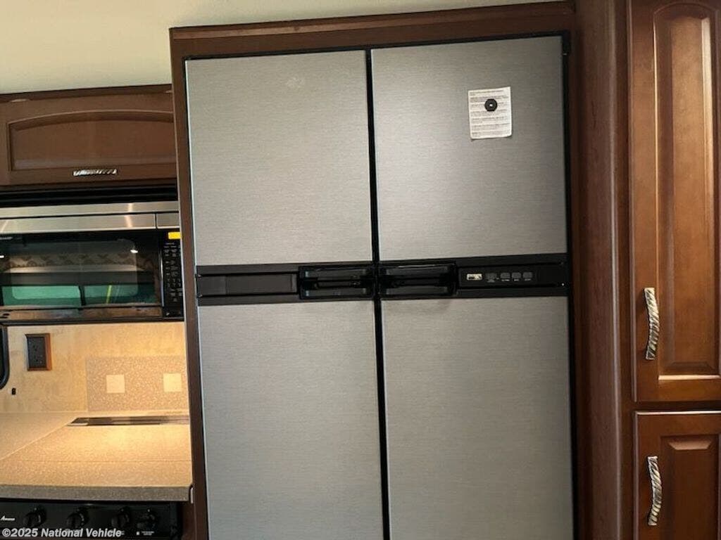 2nd owner has always been stored inside. all receipts available. Tires are good. Free and clear. 2 slide outs with toppers, One power retractable awning, Solid surface countertops, stovetop, residential fridge/ freezer with ice maker, convection microwave oven, Cook tops have never been used, All cabinets are Cherry real wood. Cable ready, tv in the living room, tv in the bedroom, radio, cb radio, full body paint, backup camera, side cameras, prepped for solar, queen sleep number bed, electric sofa - bed, matching recliner, dinette - bed, no smoking, no pets, free and clear , receiver hitch, air bags, has never been in salt.