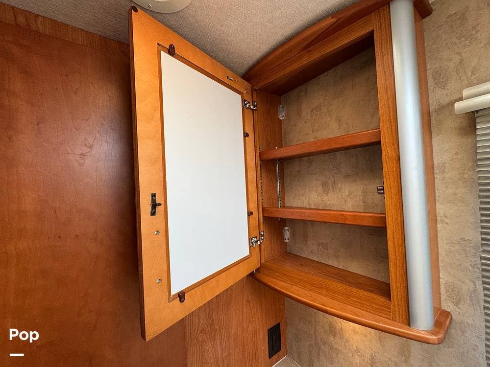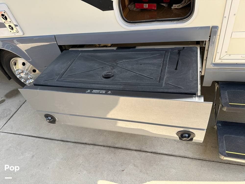 It is equipped with cruise control, a 3,500-lb. towing capacity, a refrigerator/freezer, a microwave/convection oven, a 3-burner range, a pantry, and a handy wet Locker for storage.