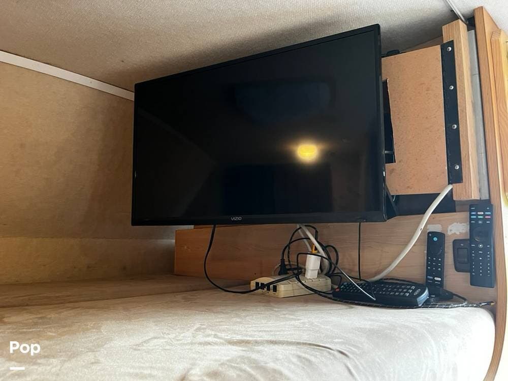 The original 19" LCD TV mounted in the over-cab bunk area has been replaced with a Smart TV. The 19" TV has been moved to the master bedroom.