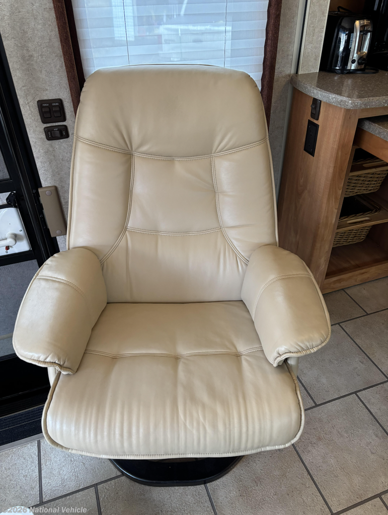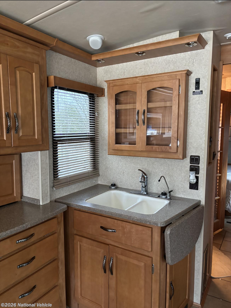 Step inside and take a look back at all of the convenient features that would make any journey enjoyable. The kitchen area features everything you need to prepare great meals on the go including a sink, a three burner range with microwave/convection oven, and a refrigerator/freezer. There is also plenty of storage for all of your dry and canned goods. Have a seat at the comfortable dinette, where you can enjoy meals with your family.
