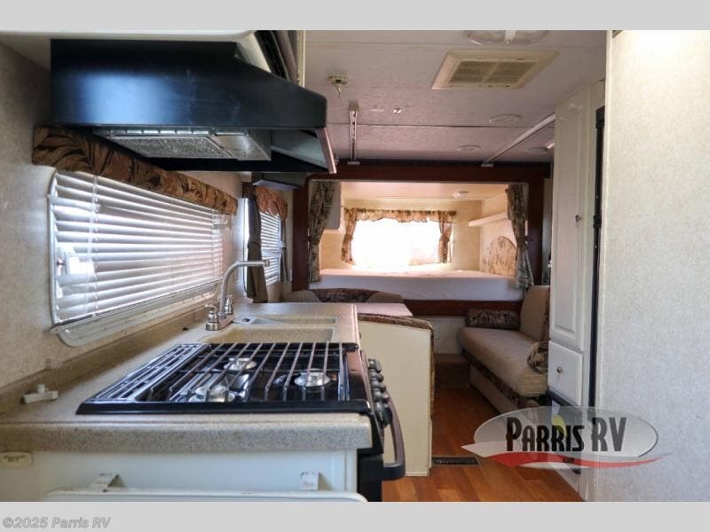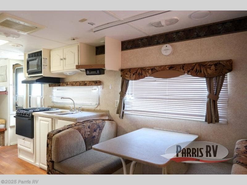 Rear Slideout Queen Bed, Sofa, Booth Dinette, Pantry, Refrigerator, Double Kitchen Sink, 3 Burner Range, Opt. Outside Camp Kitchen, Front Bunk Beds, Wardrobe, Step Tub, Linen Closet, Wardrobe, Outside Bicycle Storage and More.