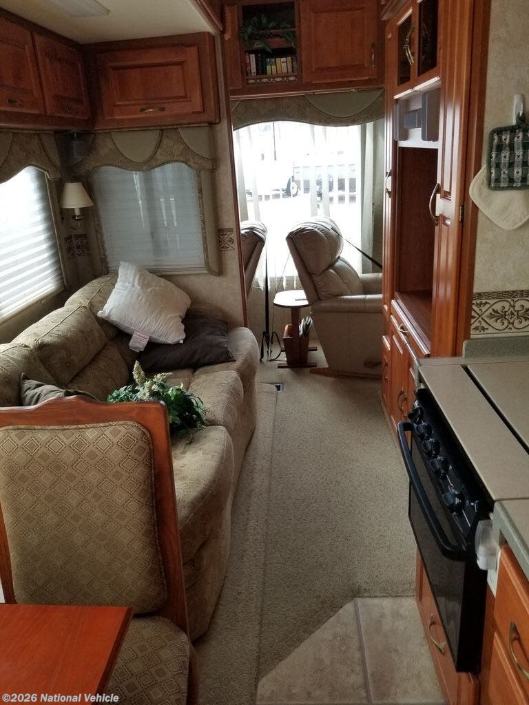 Experience timeless quality and spacious comfort with the 2007 McKenzie Medallion 355SKT, a 37-foot fifth wheel that blends elegant residential styling with the solid construction McKenzie is known for. Designed for extended stays or full-time living, this well-crafted RV offers a roomy triple-slide floorplan, upscale finishes, and thoughtful features to make life on the road feel like home.