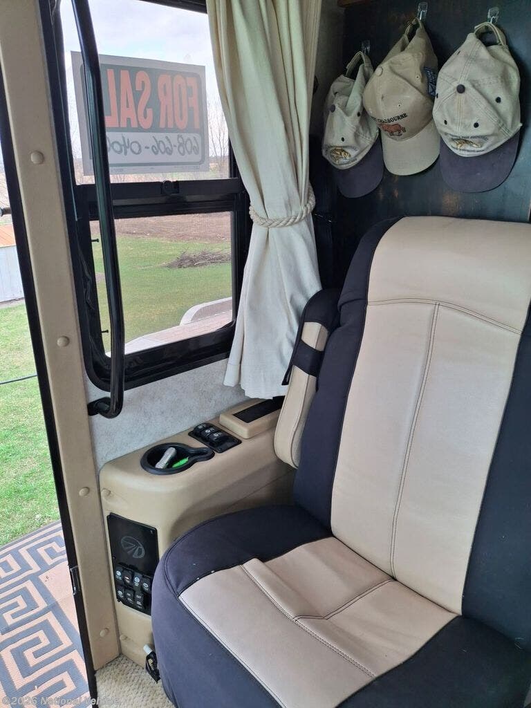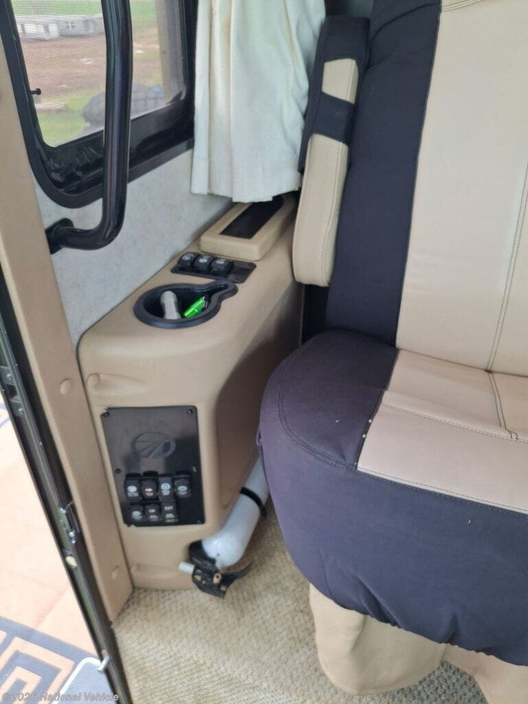 The living area includes a sofa and dinette, complemented by large windows that fill the coach with natural light. Up front, both captain?s chairs are power-adjustable for added driving comfort.