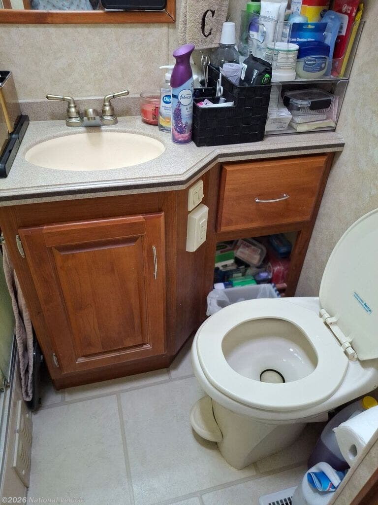 Toward the rear, you?ll find a private bedroom with a Sleep Number queen bed, wardrobe storage, and ample cabinetry. The split bath layout maximizes space and privacy, with a roomy shower and separate toilet area. Washer/dryer prep is already in place for extended stays.