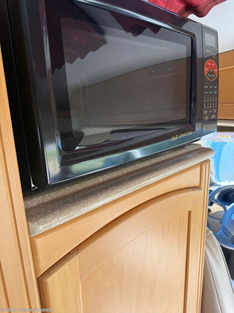 The fully self-contained coach includes a functional kitchen with a two-burner cooktop, refrigerator, microwave/convection oven, and sink. A private wet bath with shower and toilet provides the convenience of home while traveling. Additional features often include a generator, roof air conditioning, furnace, awning, and plenty of interior and exterior storage.
