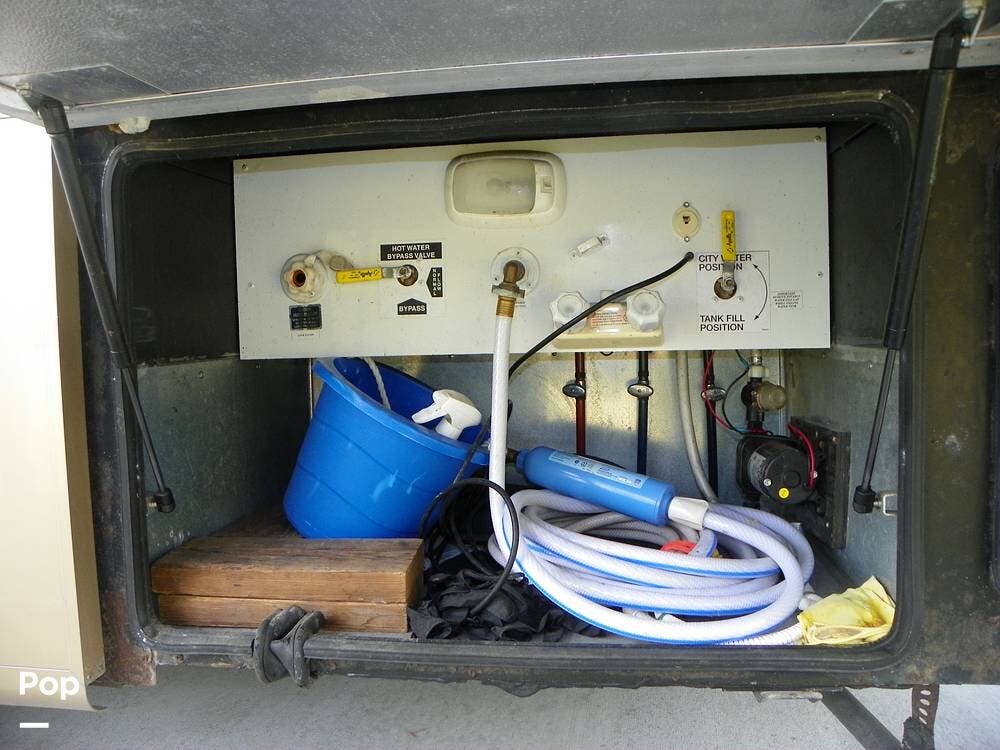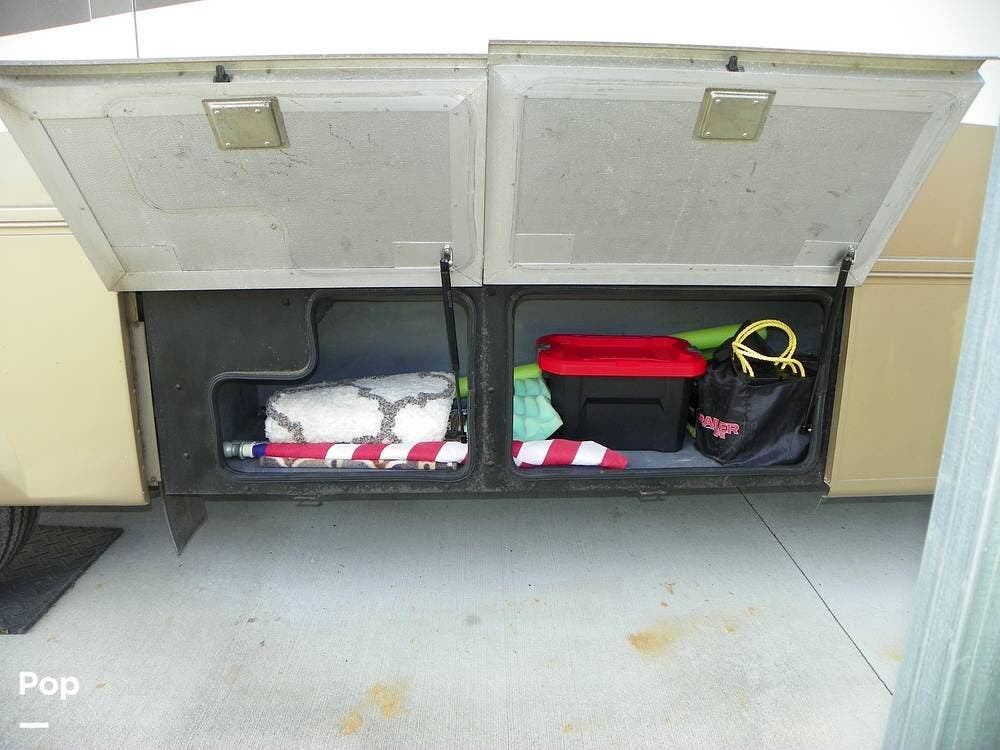 Outside, the large patio awning allows you to extend the fun outdoors. There are also large exterior storage compartments, and all of the RV's systems are clearly marked and easily accessible around the exterior.