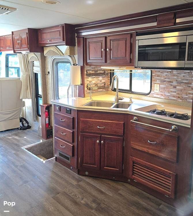 Onan diesel generator, Atwood electric leveling system, full body paint gel-coat exterior, one-piece fiberglass roof, heating tanks, storage everywhere, upgraded audio with Yamaha sound, flat screen TV, and much more.
