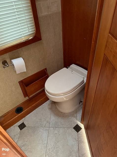 The 40QSP sits on the Freightliner Chassis and has adjustable gas and brake pedals, ABS brakes, a two-stage engine brake, air ride, an independent front suspension, and fully automatic leveling jacks.