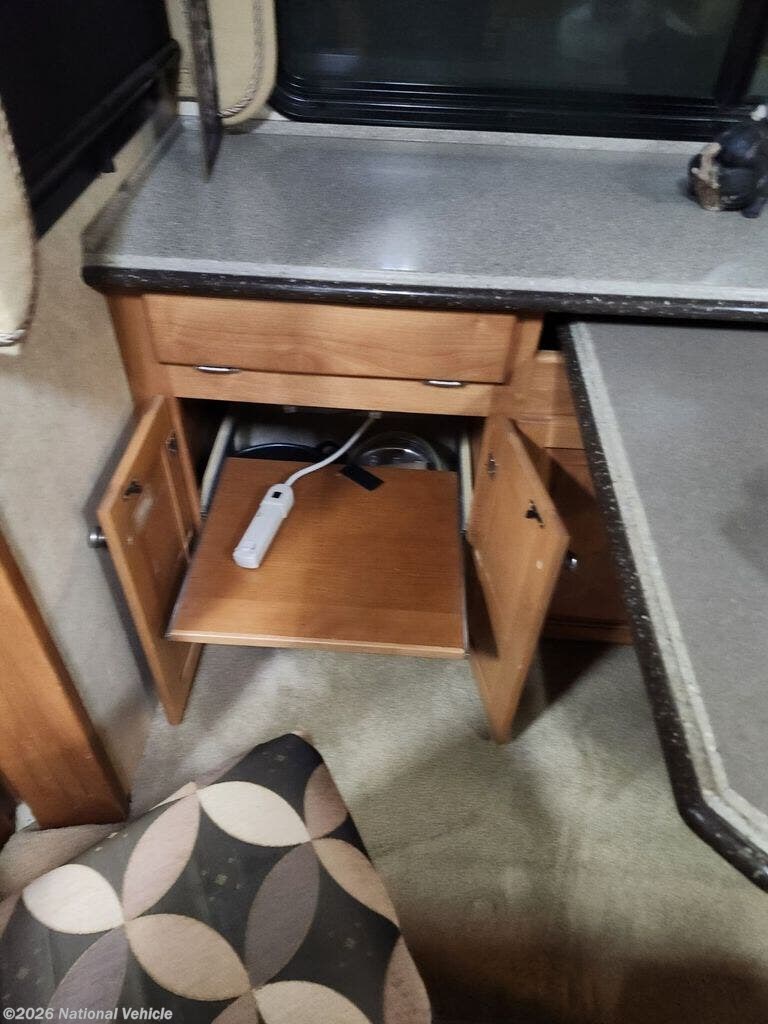 Step inside and take a look back at all of the convenient features that would make any journey enjoyable. The kitchen area features everything you need to prepare great meals on the go including a sink, a three burner range with microwave, oven, and a residential refrigerator/freezer. There is also plenty of storage for all of your dry and canned goods. Have a seat at the comfortable free standing dinette, where you can enjoy meals with your family.