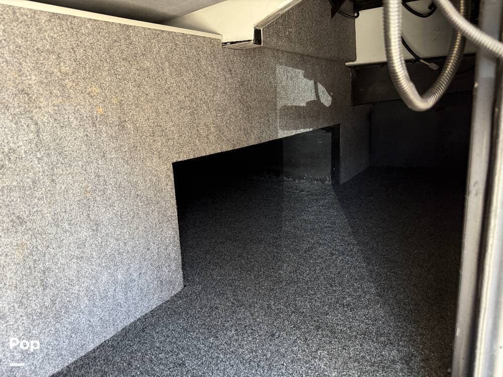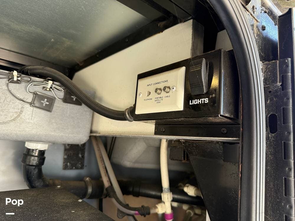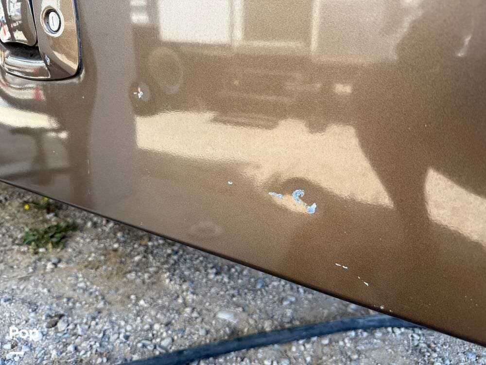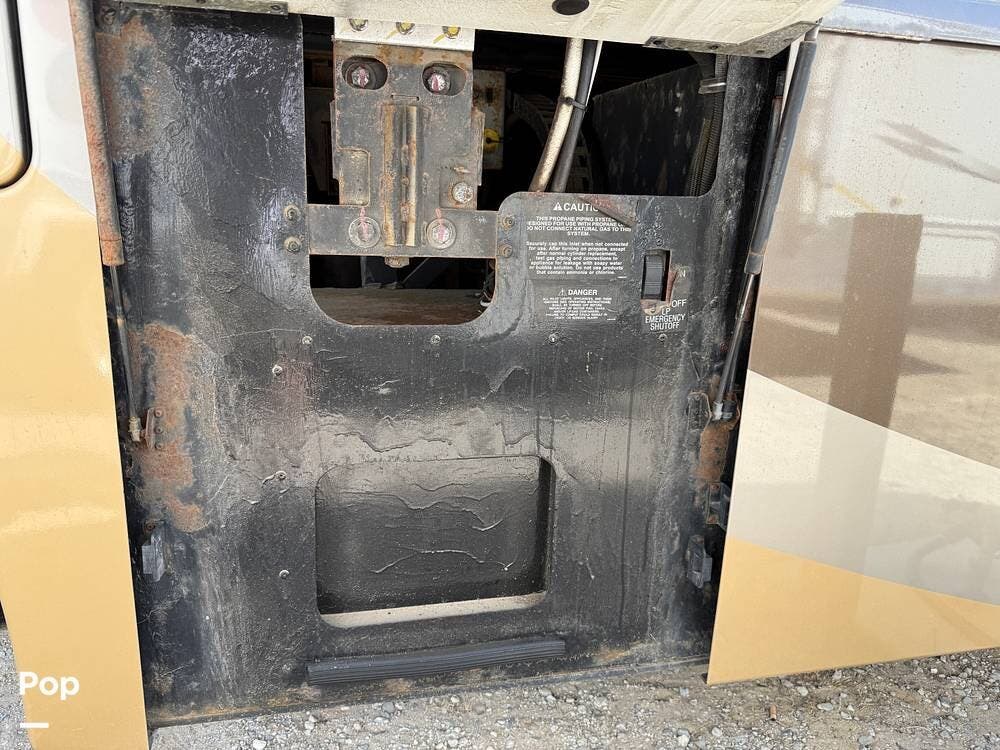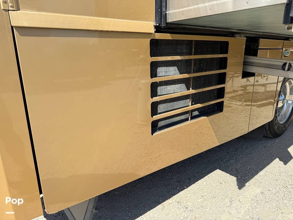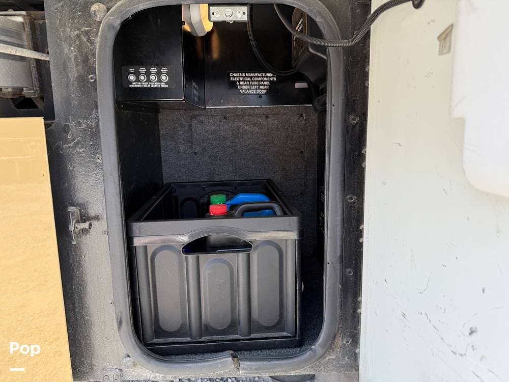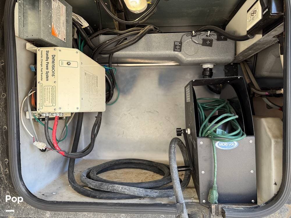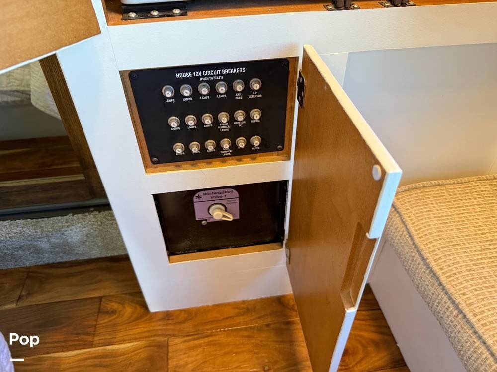 The exterior storage is easy to access, with a slide tray that operates from both sides. When not in use, she is stored indoors within the seller's RV garage.