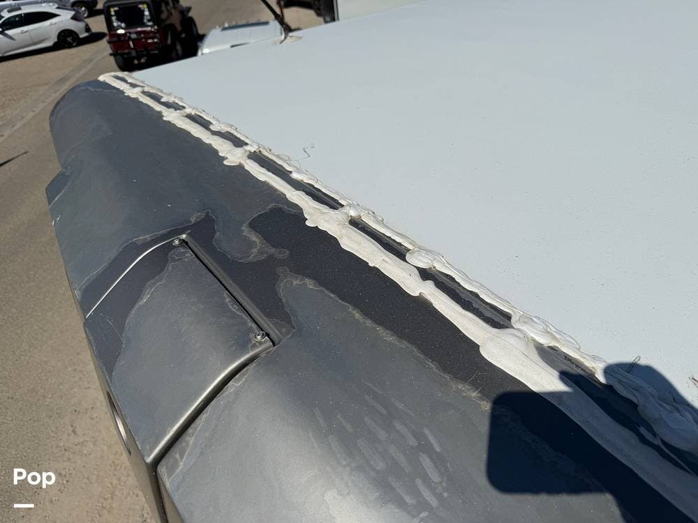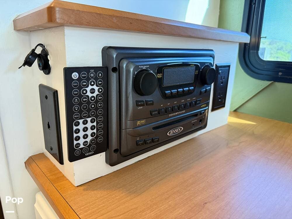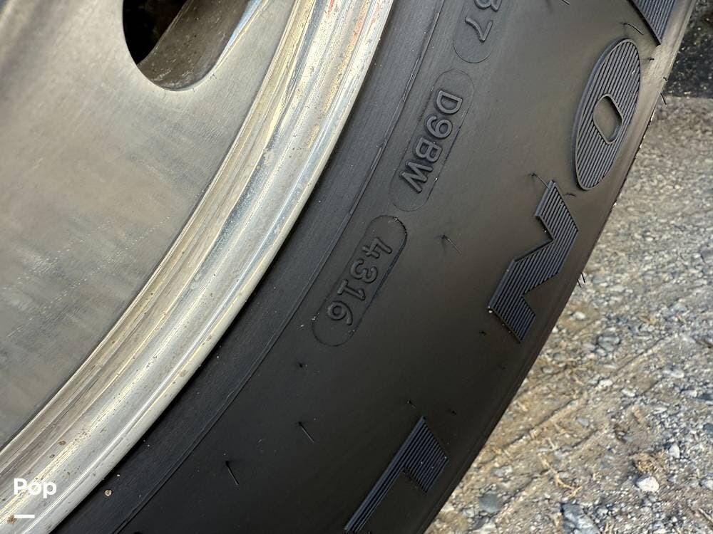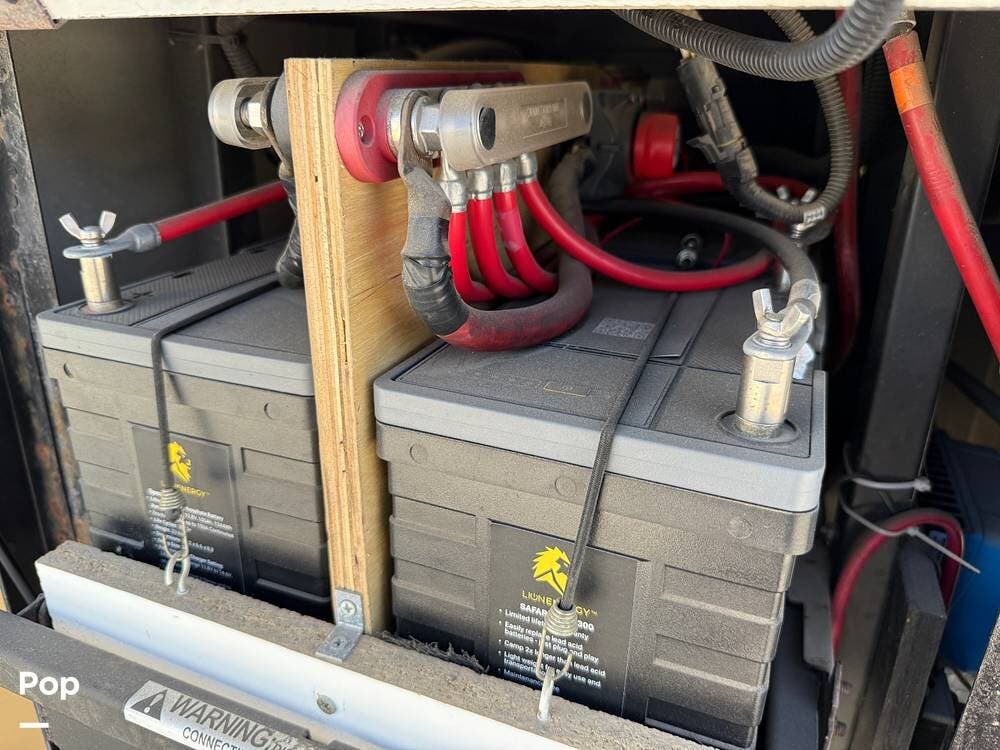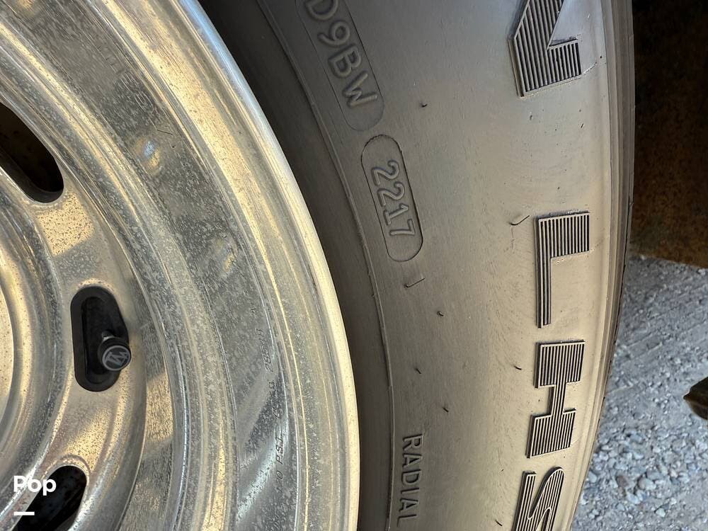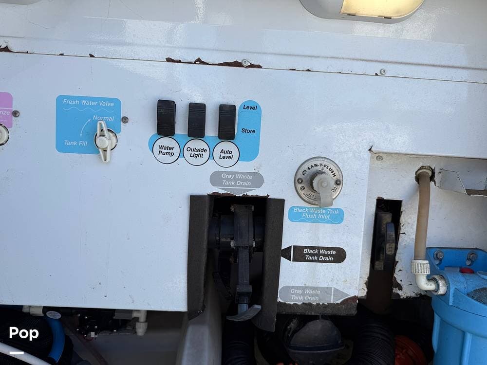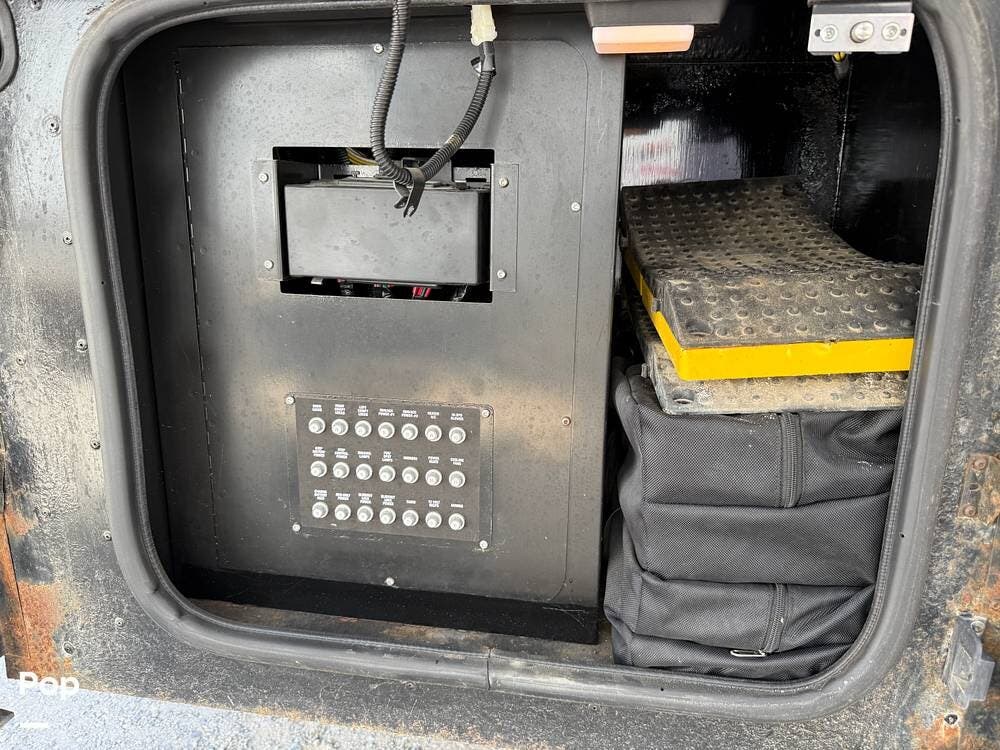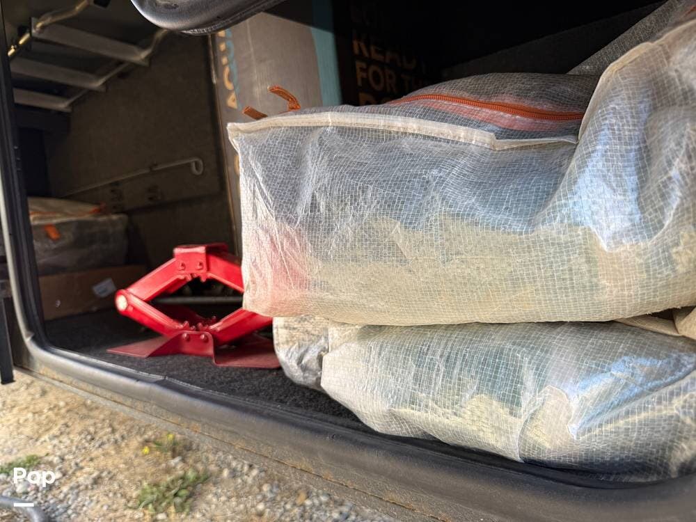 The exterior storage is easy to access, with a slide tray that operates from both sides. When not in use, she is stored indoors within the seller's RV garage.