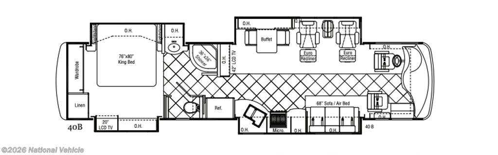 At approximately 40 feet in length, the 40B provides a roomy, residential-style interior featuring: