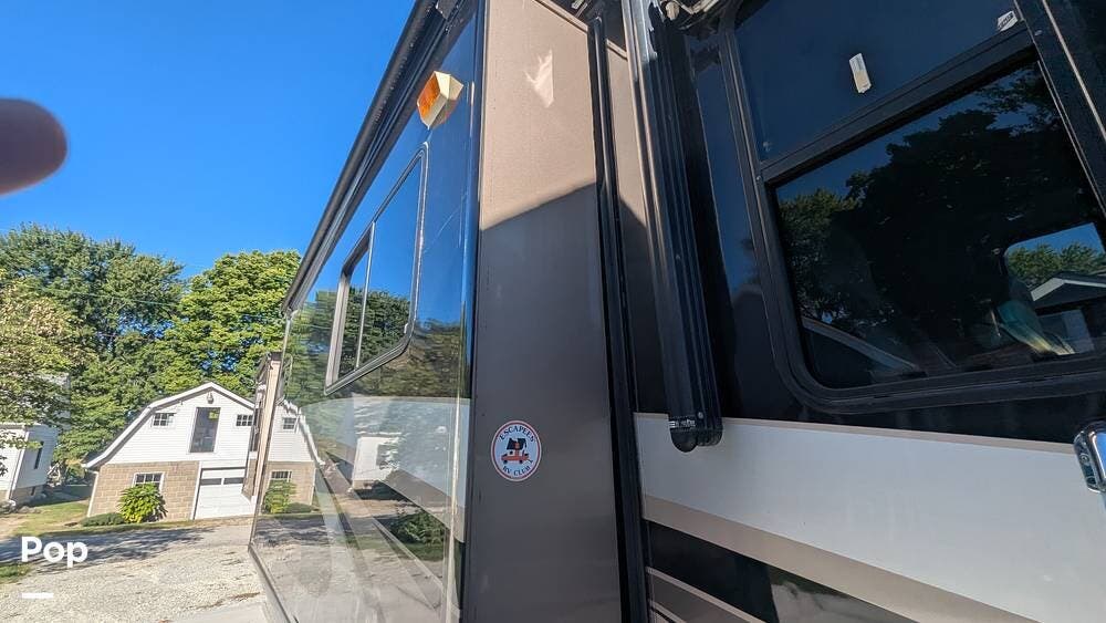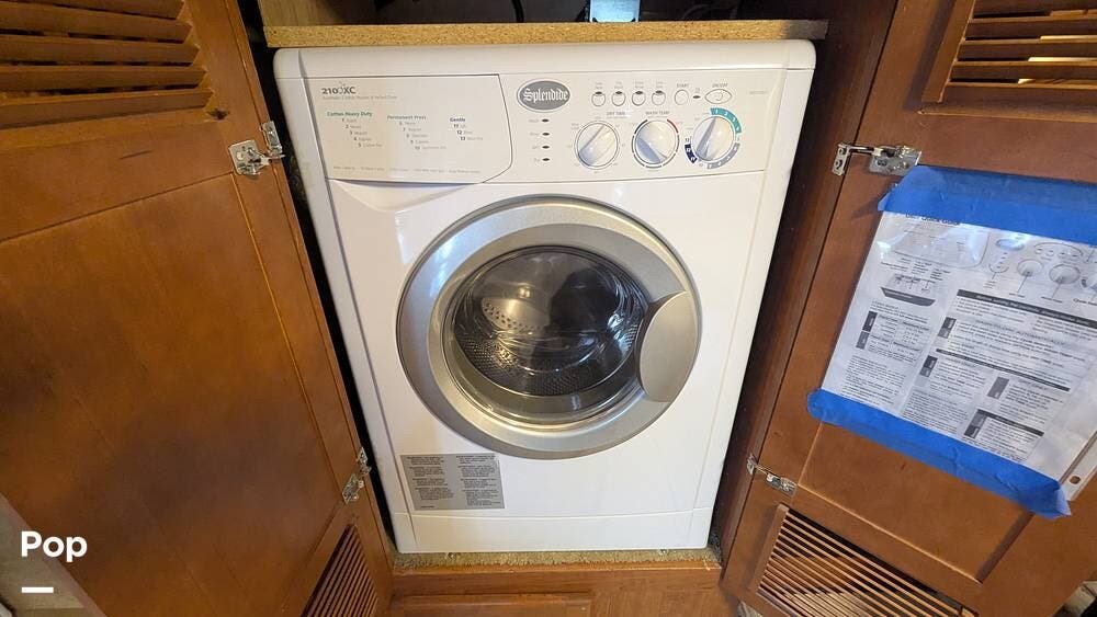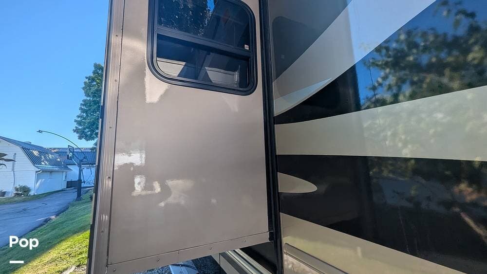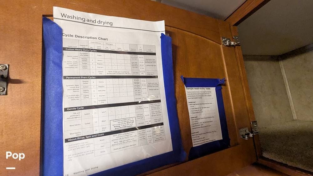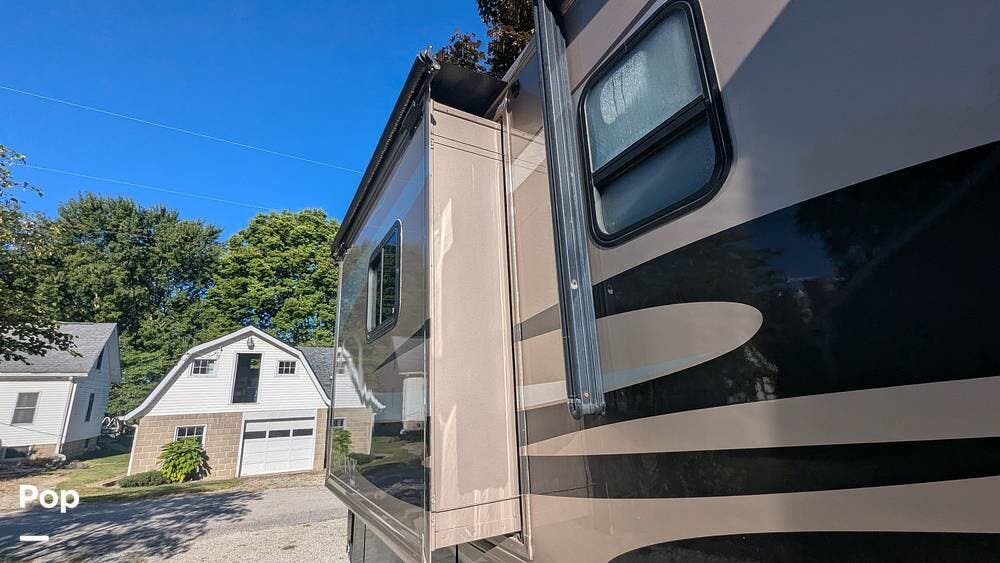 She has four slide-outs, which provide lots of living space to enjoy while camping. It also features a washer-dryer combo. The awning makes for nice shade after a long day's drive.