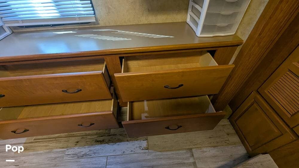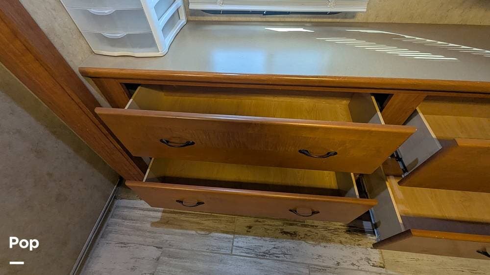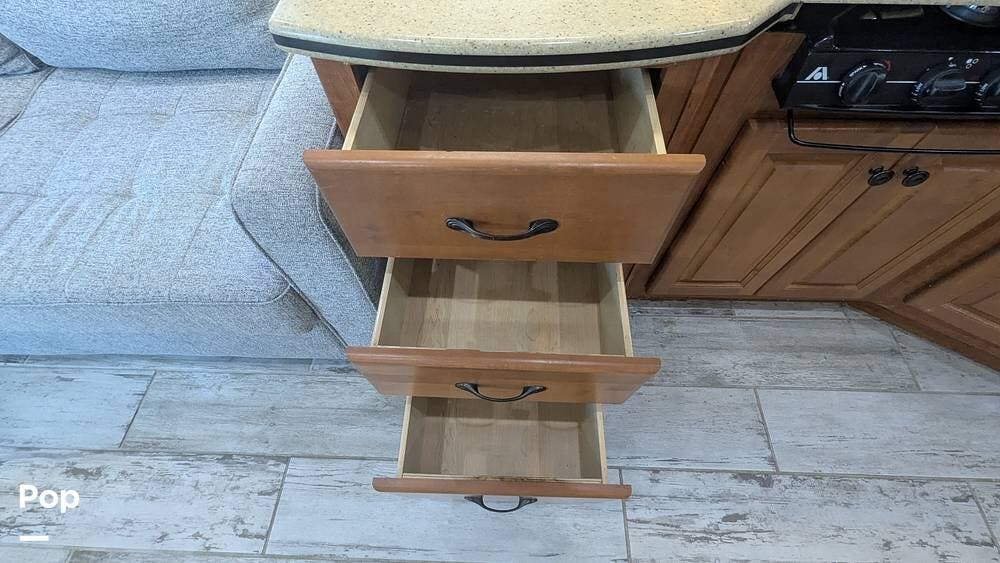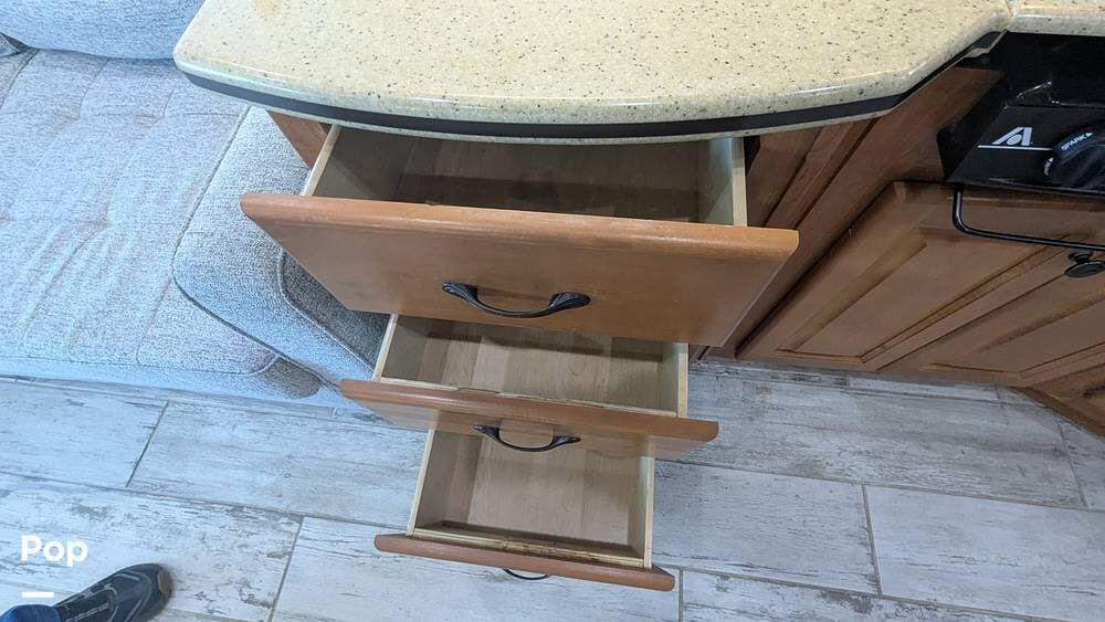 The basement storage is abundant with pass-through bays and slide-out drawers for all of your gear.