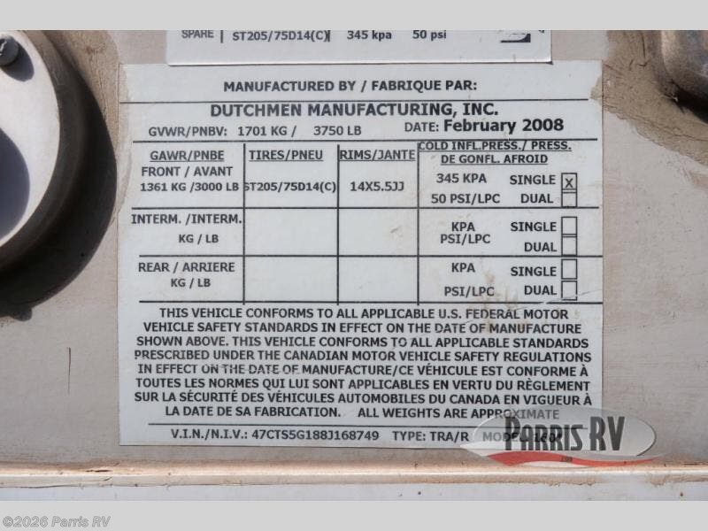 Request More Info on this 2008 Dutchmen Kodiak 160 Offered for sale by Parris RV