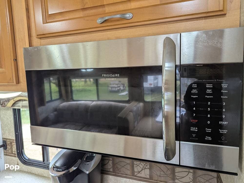 Features a full kitchen complete with a refrigerator, microwave, and ample counter space. Enjoy the spacious living area with a sofa bed and a dinette that converts into an additional sleeping area.
