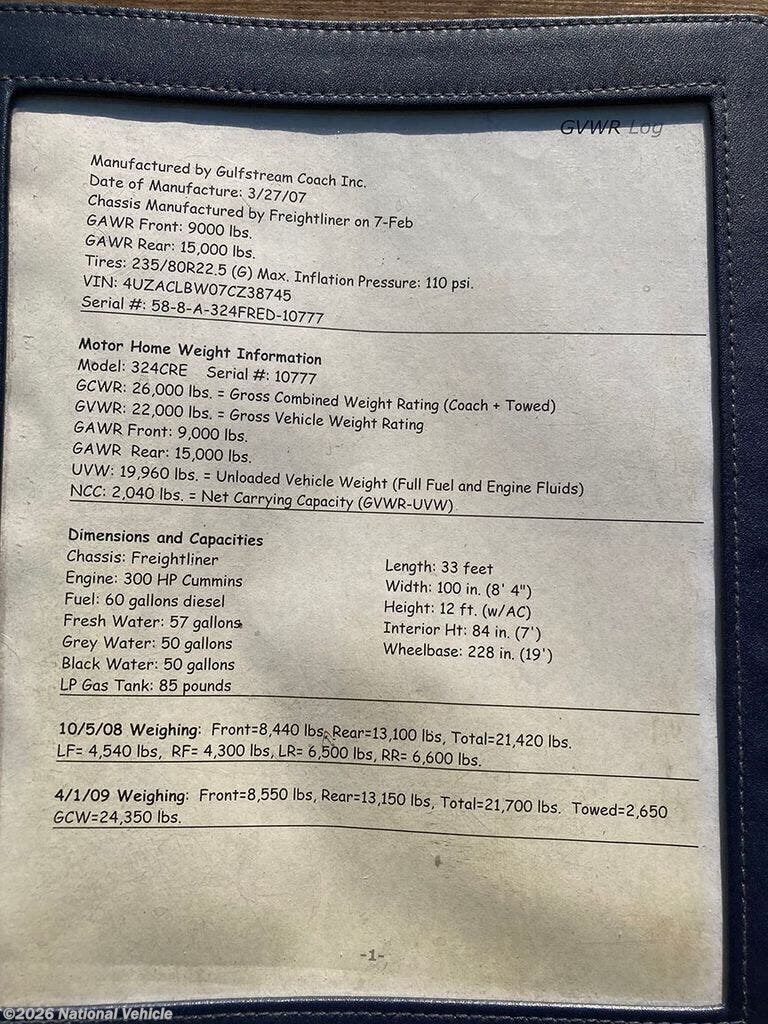 Request More Info on this 2008 Gulf Stream Crescendo 324 Offered for sale by National Vehicle
