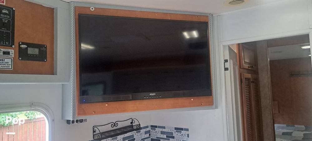 This coach is outfitted with three TVs and a Winegard TV receiver.