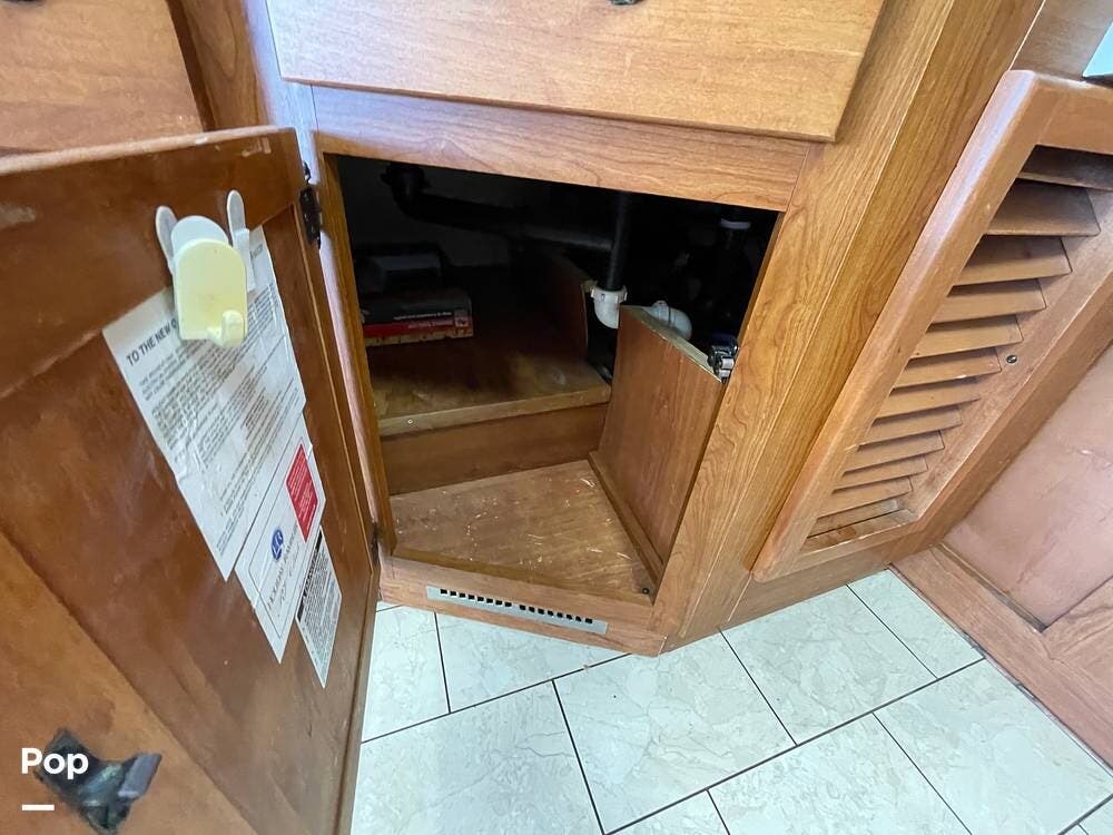 The kitchen appliances include a 3-burner stove, dual kitchen sink, and convection/microwave oven, along with plenty of cabinet and drawer storage.